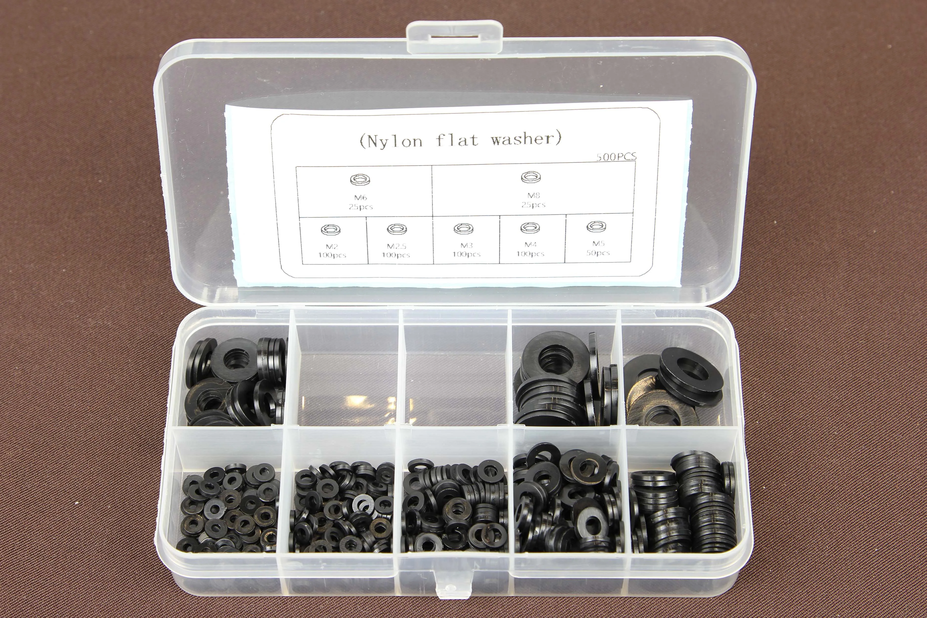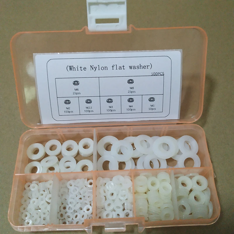 500 шт.компл. M2-M8 нейлоновые плоские шайбы DIN125 M2 M2, 5 M3 M4 M5 M6 M8 пластиковые нейлоновые плоские шайбы разделительная прокладка Mesons NL66