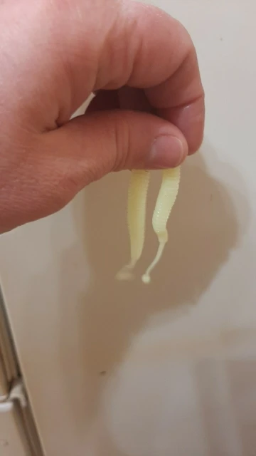 Продукт хороший. Он пахнет как креветка, но после нескольких снимков он не пахнет. Он имеет прочную и гибкую структуру. При первом использовании я получил один бас и первый снимок. Я рекомендую продавцу и товар.