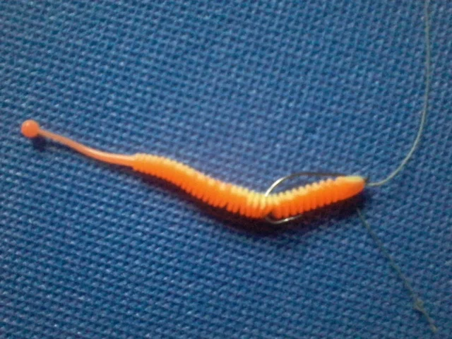 El interior del vinilo no es compacto, no se puede introducir un anzuelo para que la muerte quede a mitad del vinilo.......solo la punta tiene cuerpo y el anzuelo queda en un extremo. El pez muerde y rompe el vinilo sin llegar al anzuelo