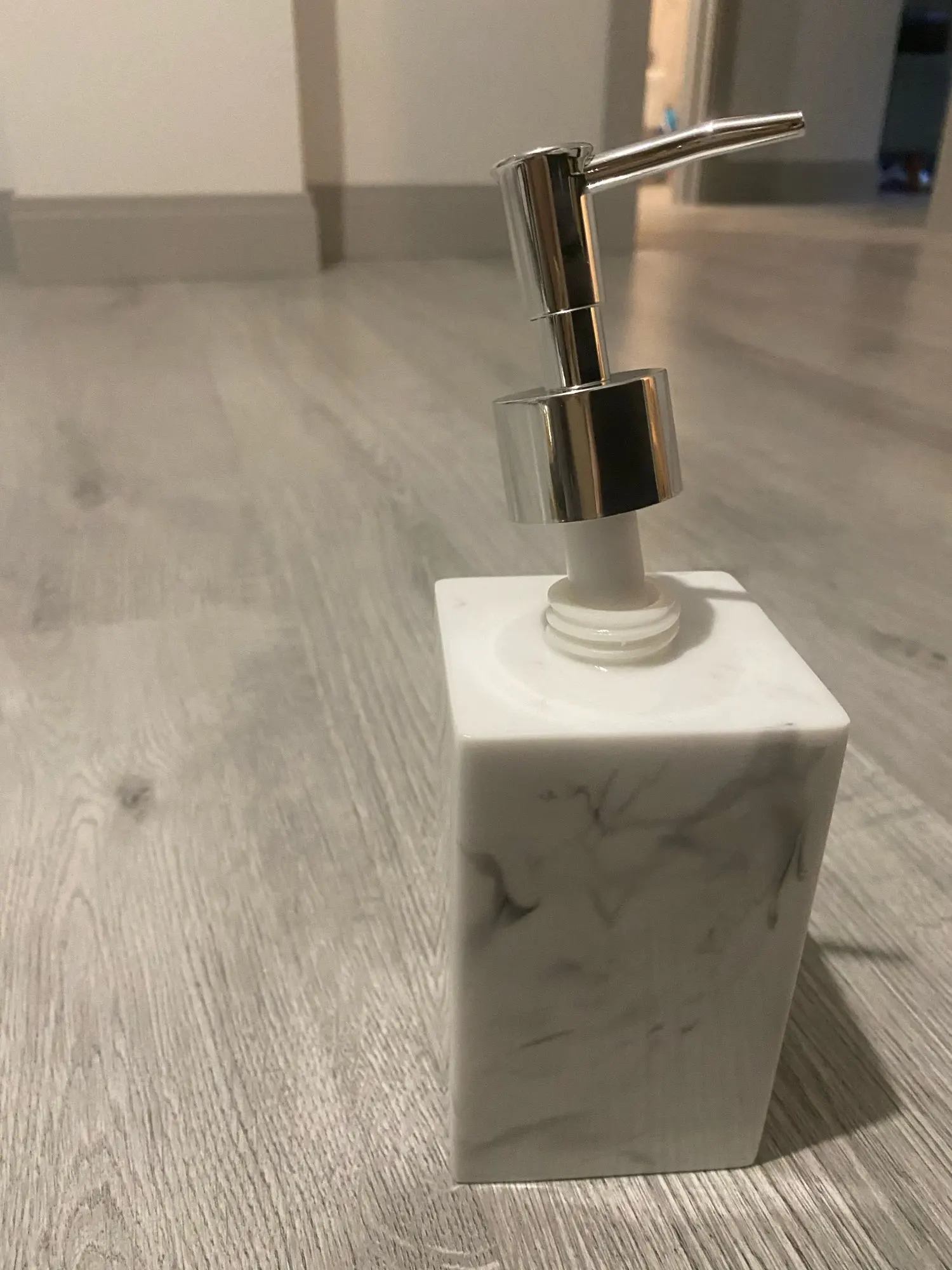 Полностью пластик!!!((( Выглядит красиво, но за такую стоимость можно было сделать сделать дозатор из металла. Совсем скоро он поцарапается и оботрется.Сама бутылка легкая.. Есть с чем сравнить - заказывала из этой серии другой аксессуар. Он меньше, но гораздо тяжелее