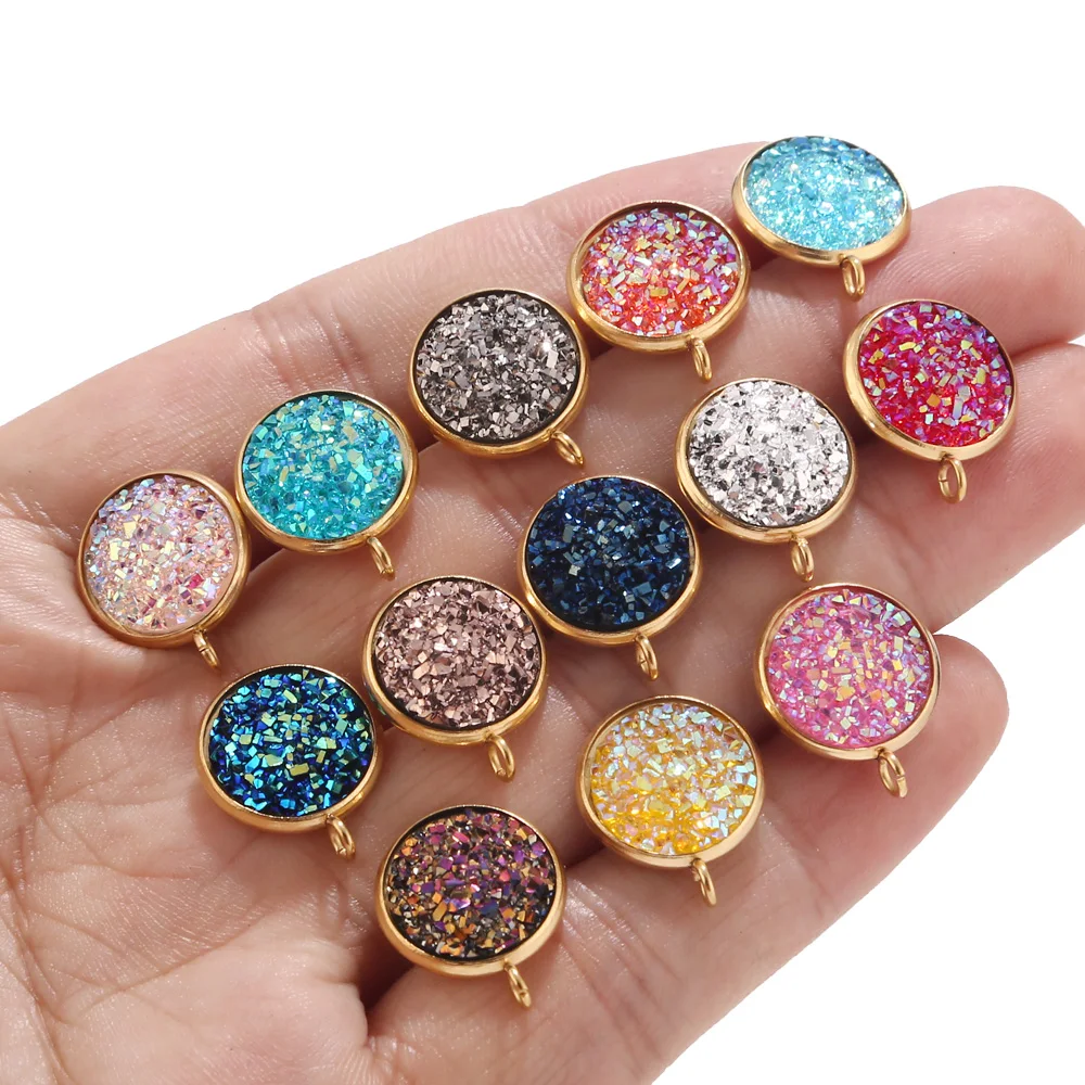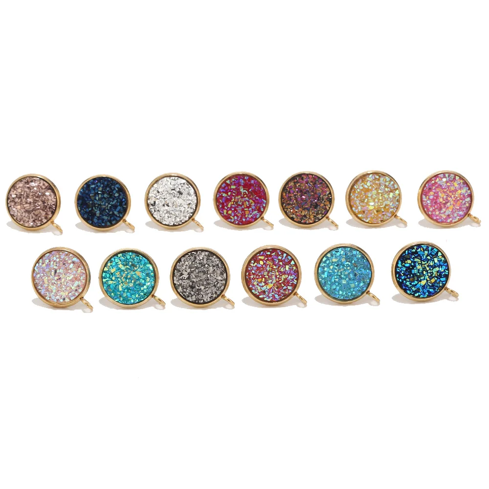 40 шт 12 мм из нержавеющей стали смолы друзы Ювелирные серьги по оптовой цене компоненты с петлей золотой тон