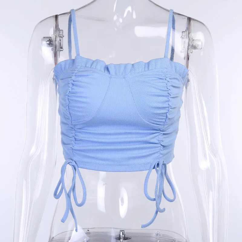 Сексуальный летний хлопковый укороченный топ, женская розовая плиссированная майка со шнуровкой и галстуком-бабочкой, милые сексуальные топы на бретельках, лето 2020