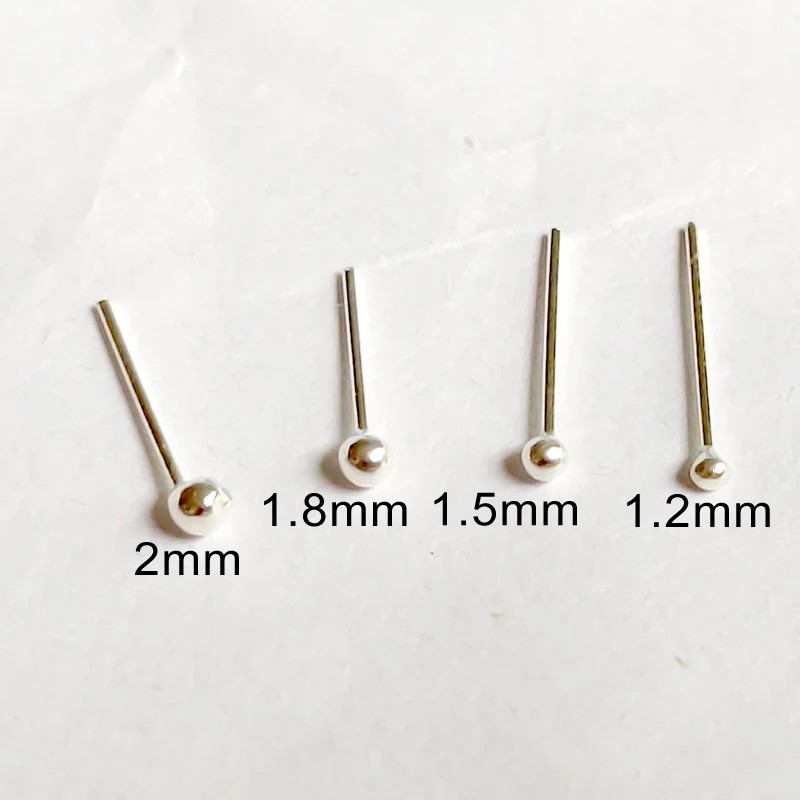 Женская серебряная шпилька для носа, 1,2 мм, 1,5 мм, 1,8 мм, 2 мм, разные размеры, булавка для шарикового носа, серебристая шпилька для носа, 40
