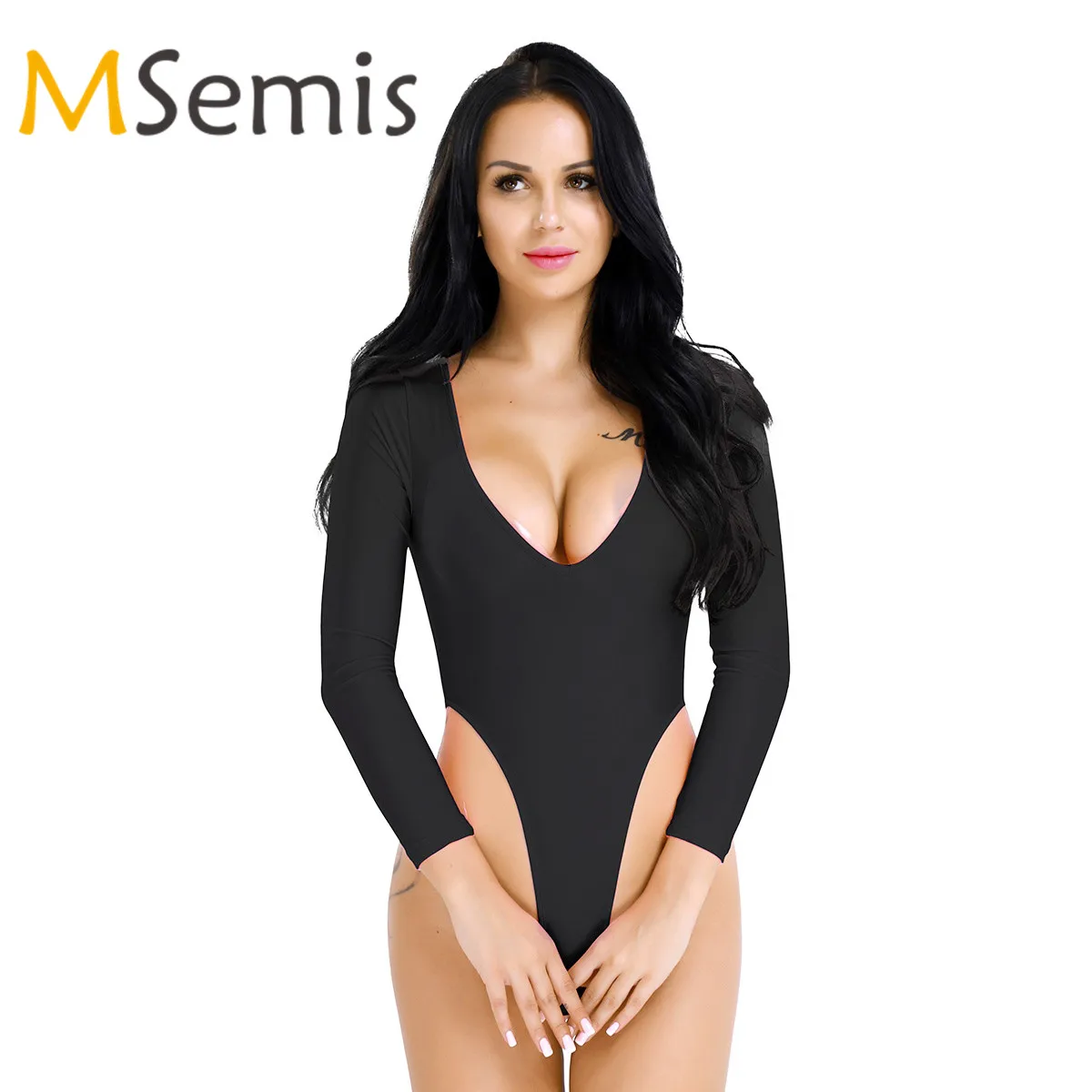 Женский Монокини, стринги, купальник, трико, Цельный купальник, боди, нижнее белье, чулки, с длинным рукавом, высокая посадка, боди