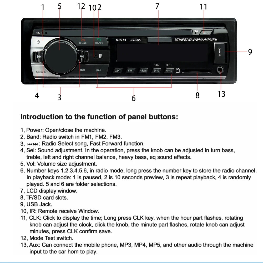 JSD520 ISO автомобильный радиоприемник, цифровой Bluetooth MP3 60Wx...