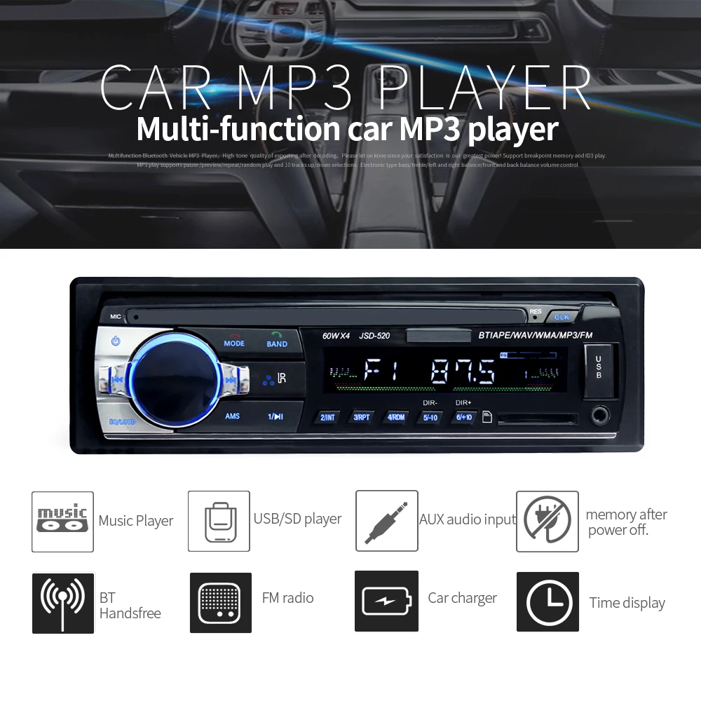 Автомобильное радио JSD520, цифровой стереоплеер с Bluetooth, MP3, ...