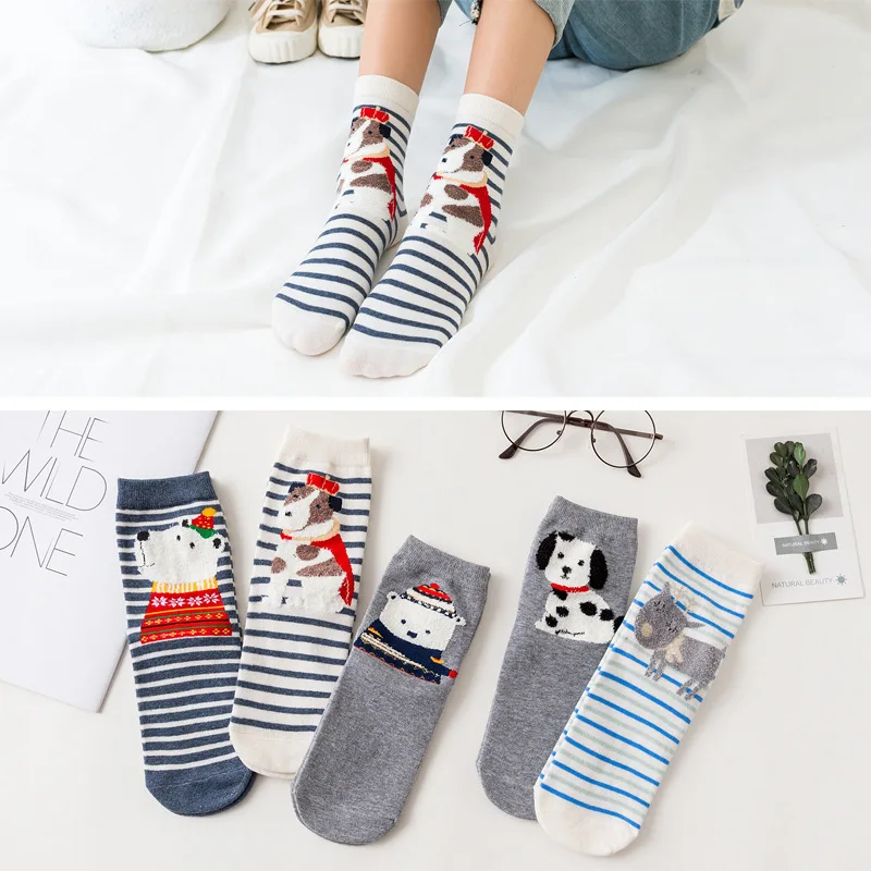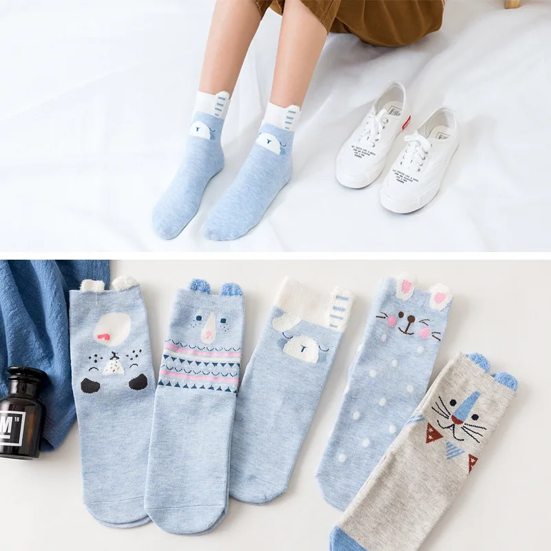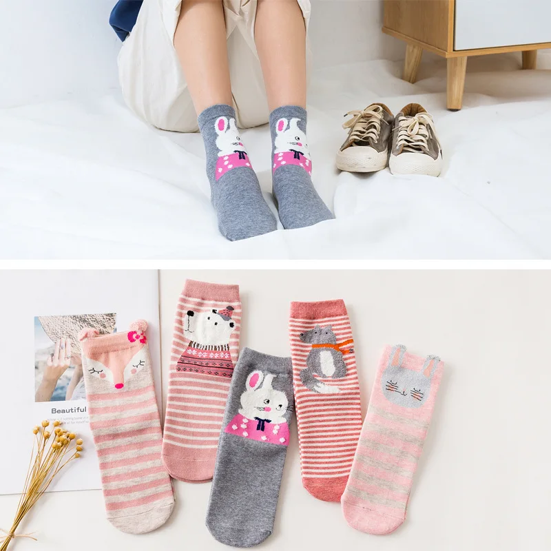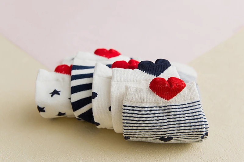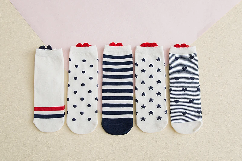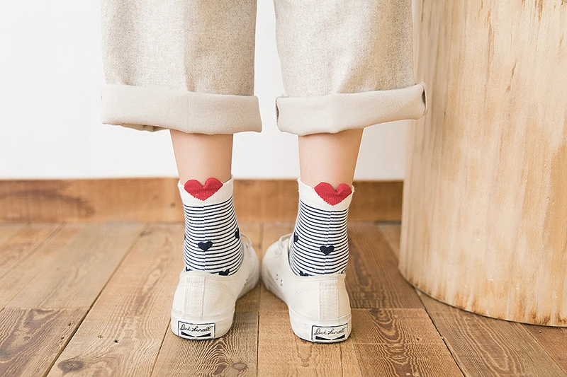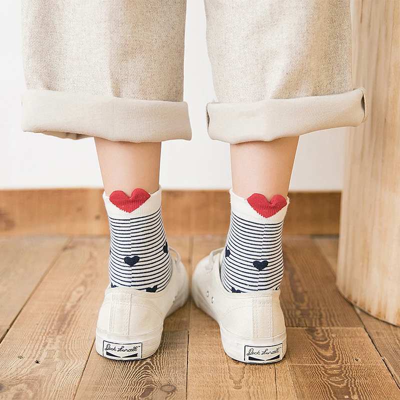 5 пар, Новое поступление, женские хлопковые носки, белые, красные носки с принтом в форме сердца, короткие носки, повседневные носки с ушками животных, красное сердце, носки без пятки, 35-40