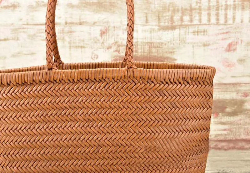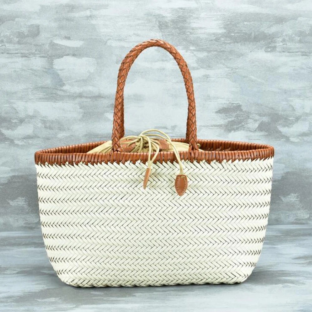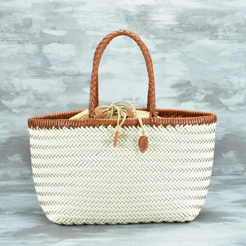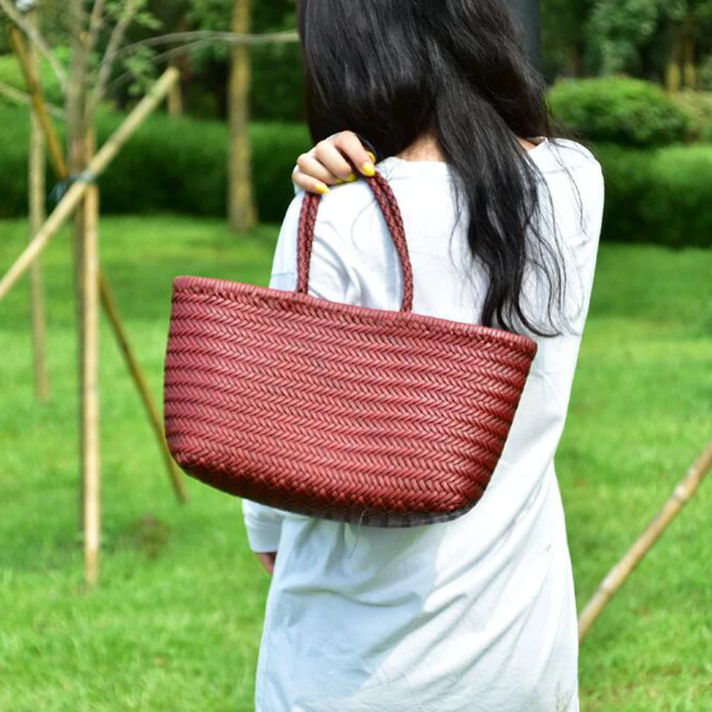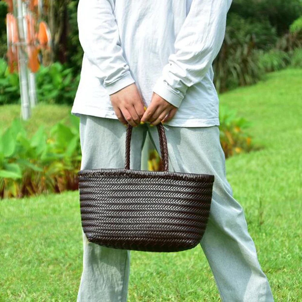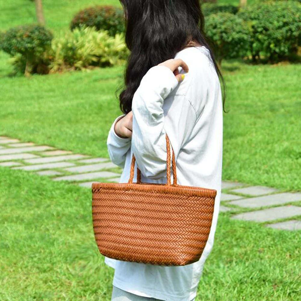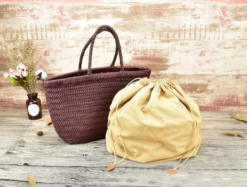 Женские плетеные кожаные сумки, Женская Ручная плетеная Сумка-мешок с хлопковыми карманами, Повседневные вязаные кожаные сумки с отделением