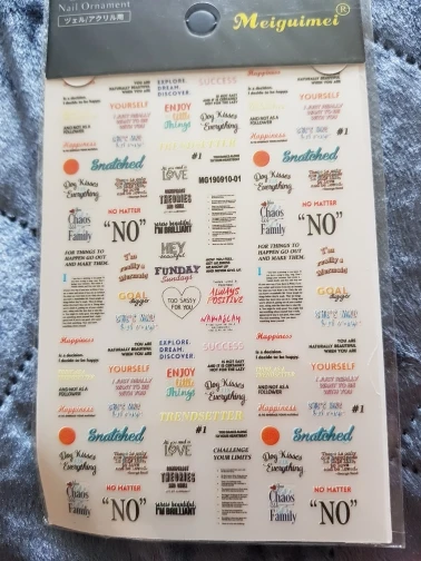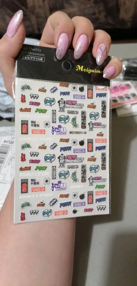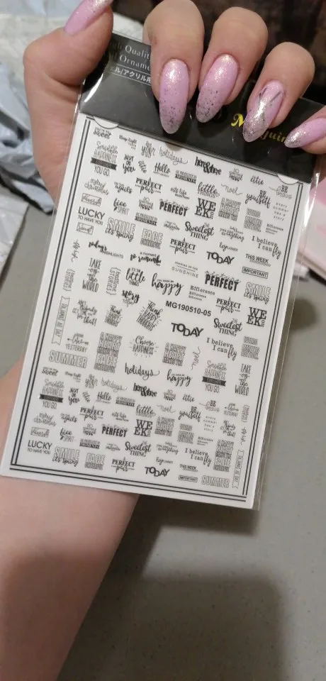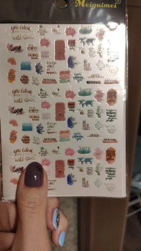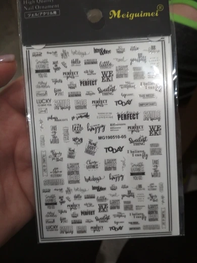 Супер. Очень понравилось качество. Наклеечки не большие по размеру, на ноготь клеются шикарно. Буду заказывать еще