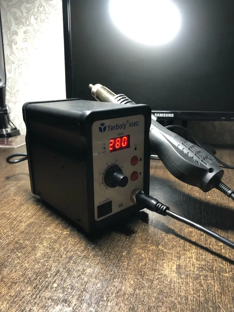 Пользуюсь около месяца, пока еще работает. Температура не совпадает, если калибровать то под рабочую температуру. На низких оборотах вентилятора и при высокой температуре начинает плавится корпус самого фена. С пайкой мелких смд справляется. Пользуюсь паяльным феном в первые.
