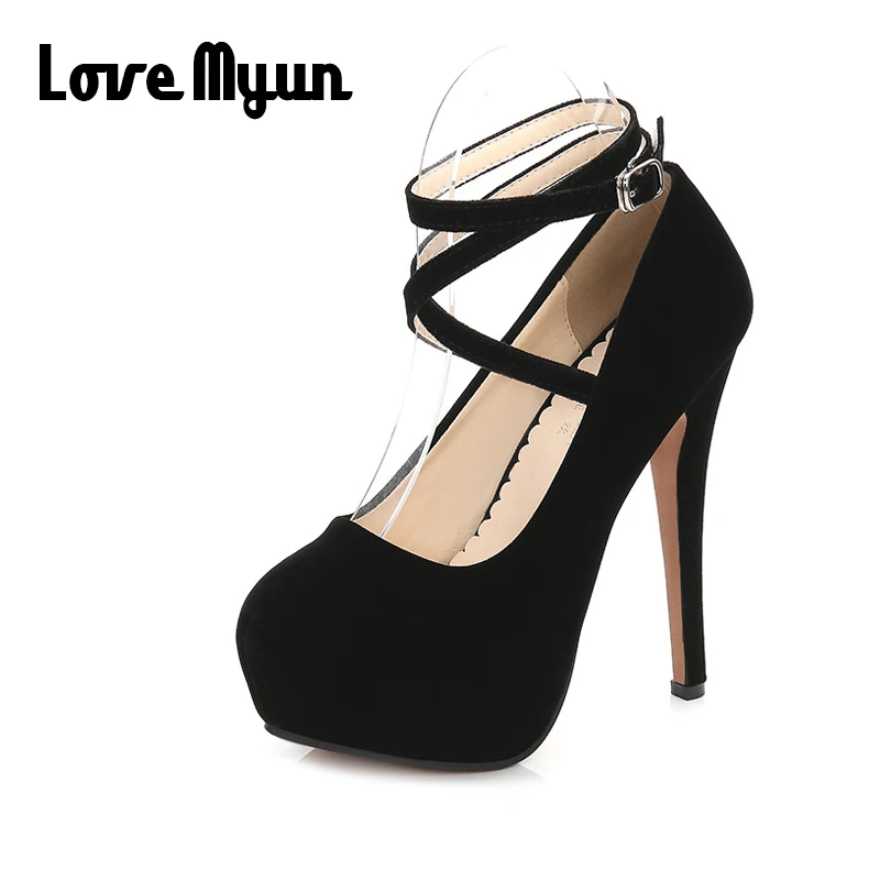 Женские туфли-лодочки на высоком каблуке, на толстой подошве, с перекрестными ремешками, пикантные сандалии для ночного клуба, туфли для танцев, большие размеры 46, B11-48