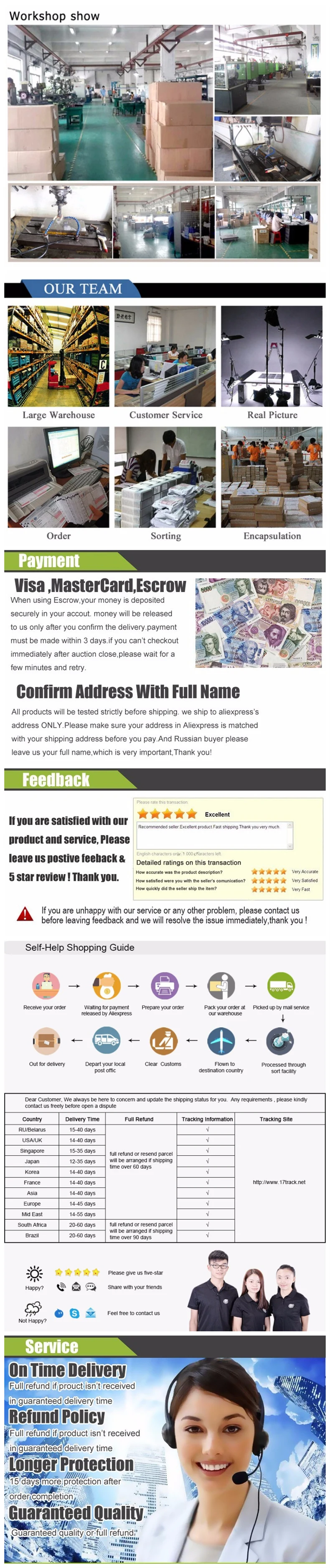 Наша компания более 150000 положительных отзывов клиентов рекомендуют качественные и надежные продукты! Упаковка достаточно безопасна! Лучшая цена! Вам они понравятся! Мы стремимся к; каждый предмет проверен перед отправкой снова; использовать хорошую упаковку; обеспечить лучший сервис! Если у вас есть какие-либо проблемы при получении пакета, вы можете связаться со мной вовремя, чтобы решить проблему вместе. Мы будем рады Вам помочь. Я желаю вам и вашей семье счастья. Искренне.
