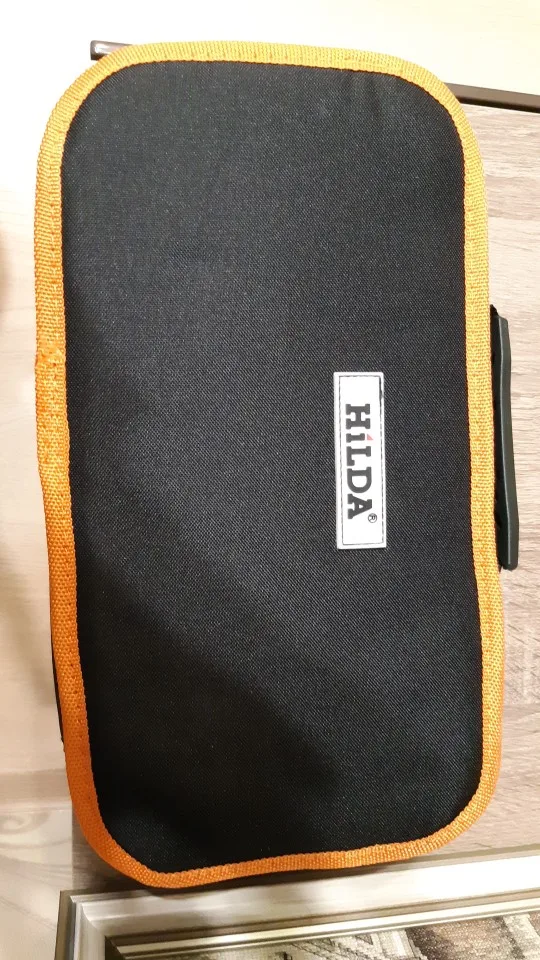 Супер доставка! Буквально 1 день по России. Материал качественный, плотный. Маленькая сумка более мягкая, а та что побольше с жёсткими вставками сбоку. В маленькую сумку вмеслтилась Hilda 400w с гибким валом и насадками. В квадратную поместить её не удалось из-за более жёстких вставок, думаю пойдёт для небольшого электроинструмента типа шуруповерта. А вот к качеству пошива производителю следует повнимательнее отнестись - есть косяки, тем более для тряпочной сумки цена не маленькая. Плюс в скорости доставки, ну и сшиты вцелом неплохо. P. S. Нитки и края прижег, оценку не стал снижать. Решать вам брать или нет, но вцелом товар и продавца советую.
