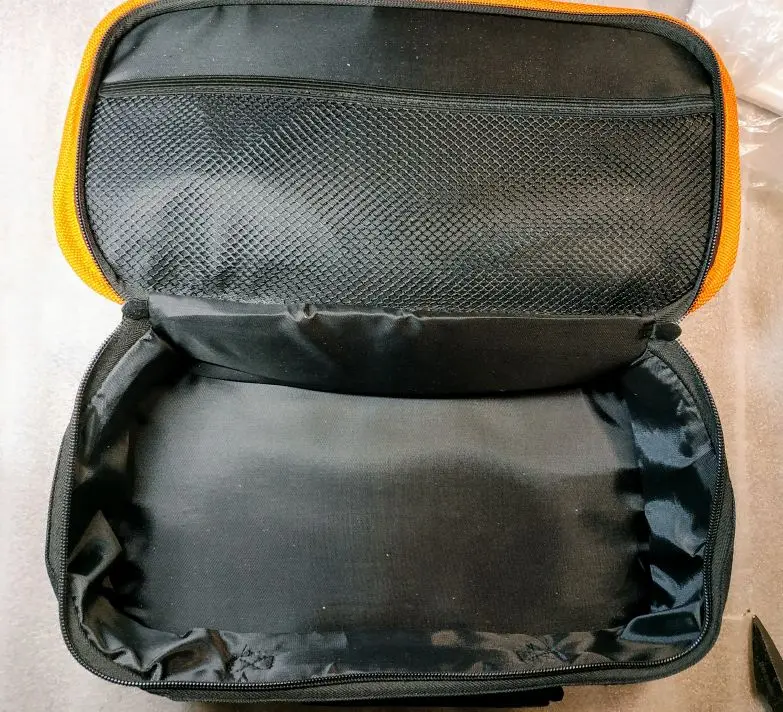 Отправка не моментальная, но в пути всего два дня, курьер IML, МСК. Если бы не взятый ранее дремель этой фирмы, то нашёл бы сумку подешевле. В стенках и основаниях зашит достаточно плотный материал, который помогает держать форму. Собачки на молнии две, сама молния не очень хлипкая, но и не монументальная. Внутри есть сетчатое отделение для мелочи, но без фиксации закрытия - если чехол не строго в вертикальном положении, то эта мелочь будет вываливаться. Выручают купоны и доставка до двери.