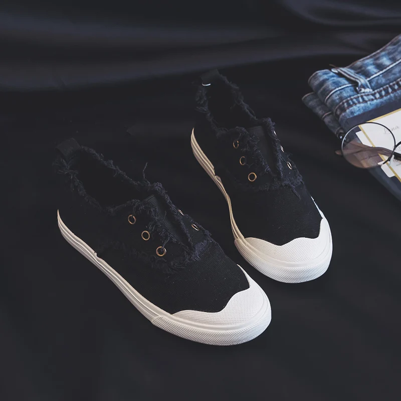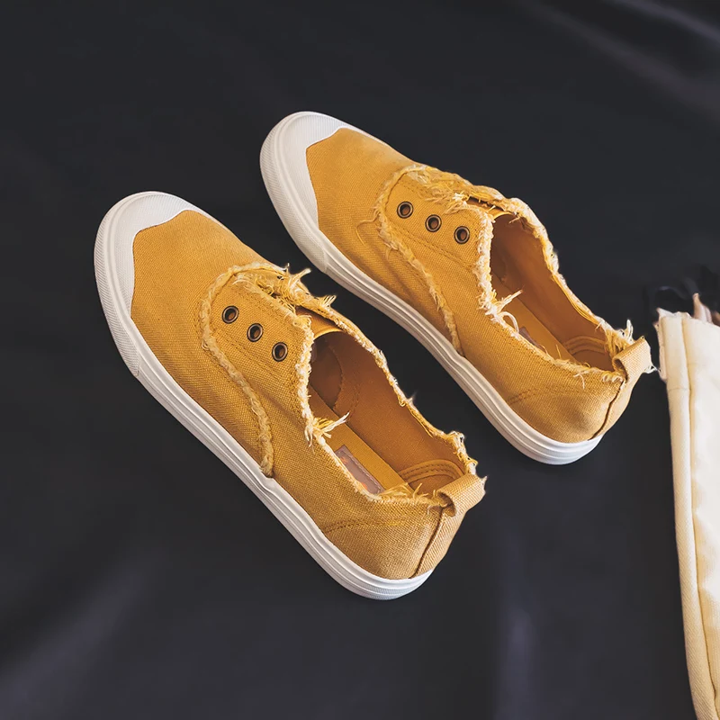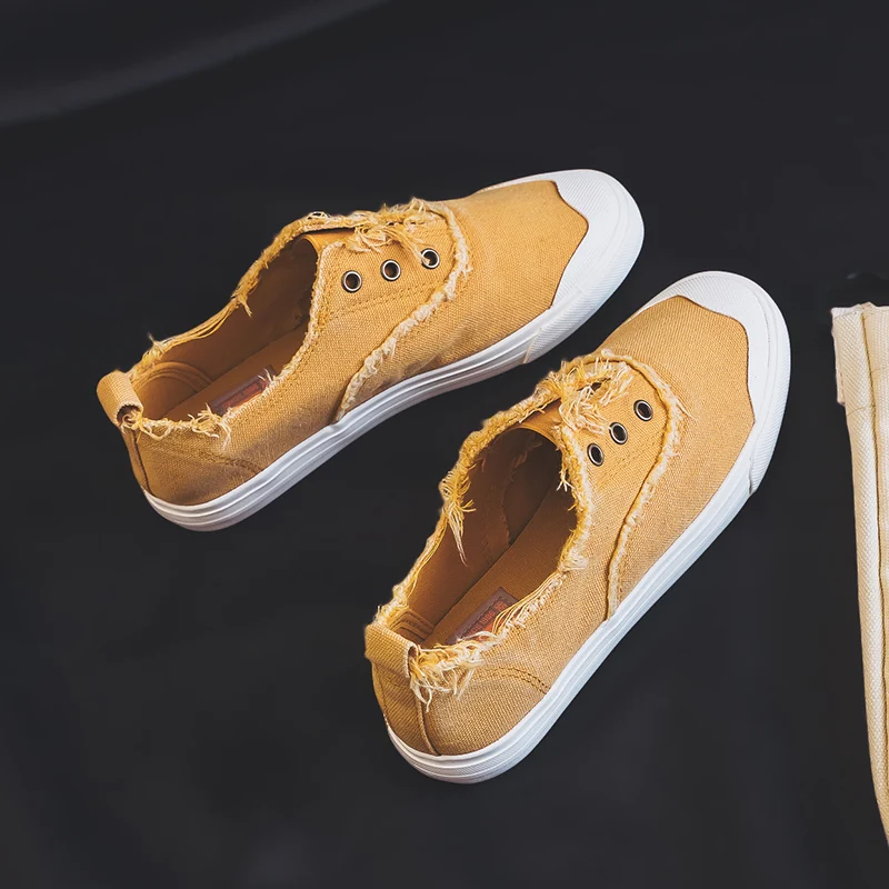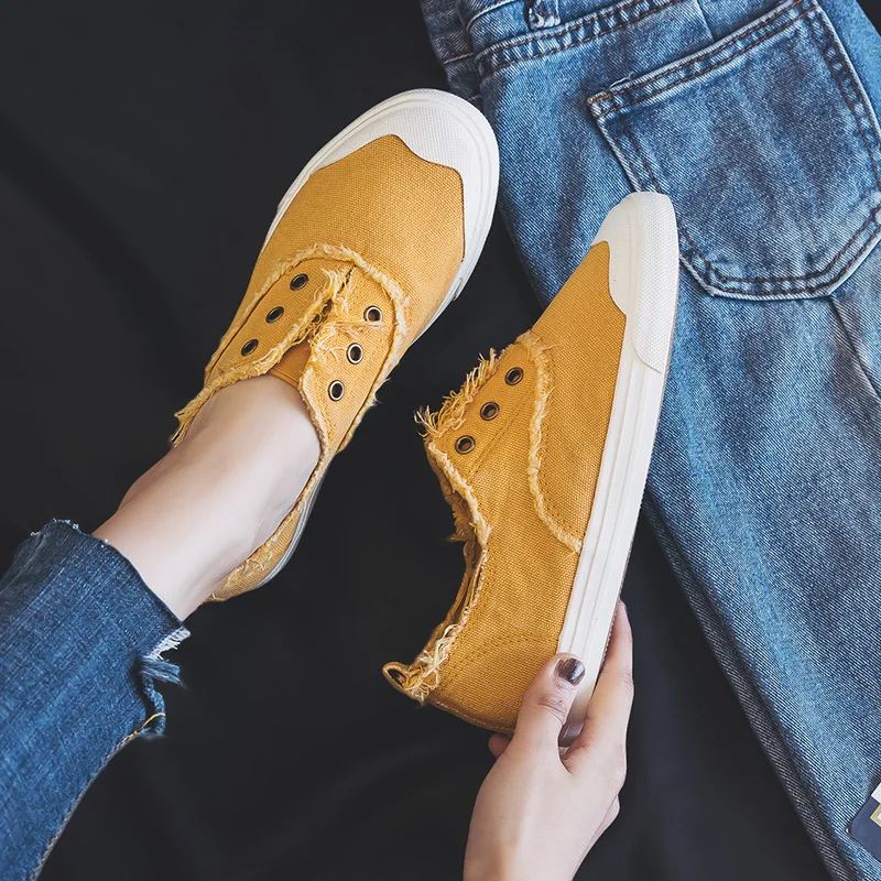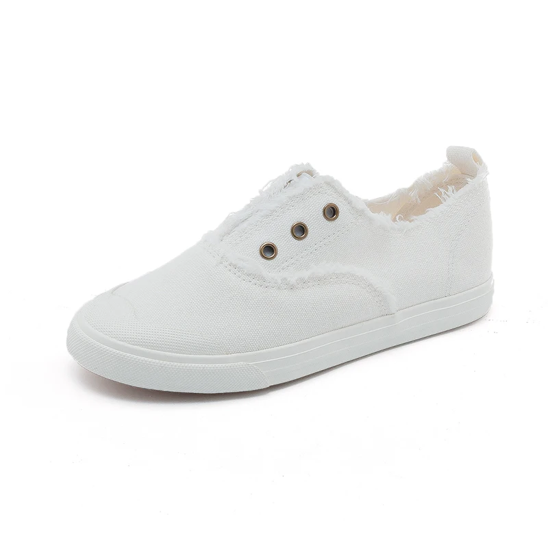 Лоферы женские простые, однотонные холщовые кроссовки без шнуровки, Вулканизированная подошва, текстильные, белые, 35-40