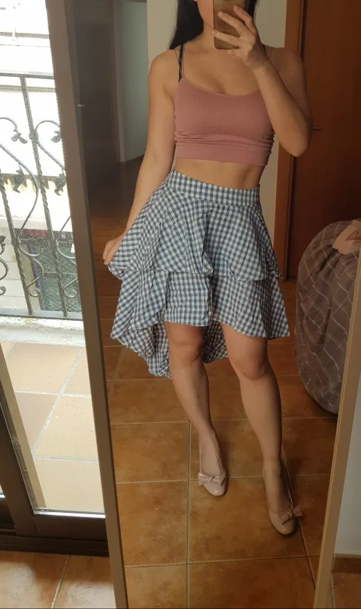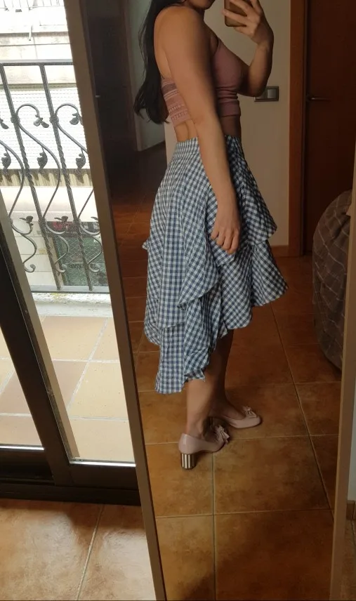 I'm in love with this skirt, cute short skirt front with an elegant back! The material is 100% cotton.