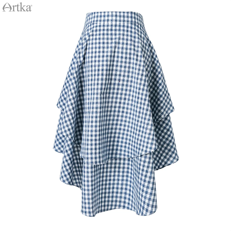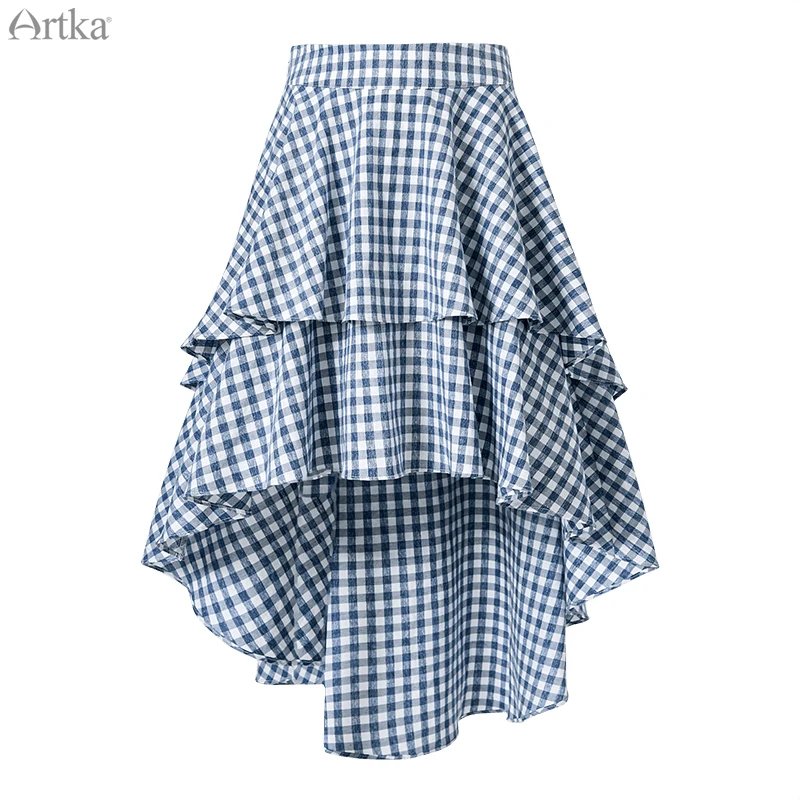 Женская Асимметричная юбка ARTKA, короткая Двухслойная юбка в клетку, QA15096X, лето 2019
