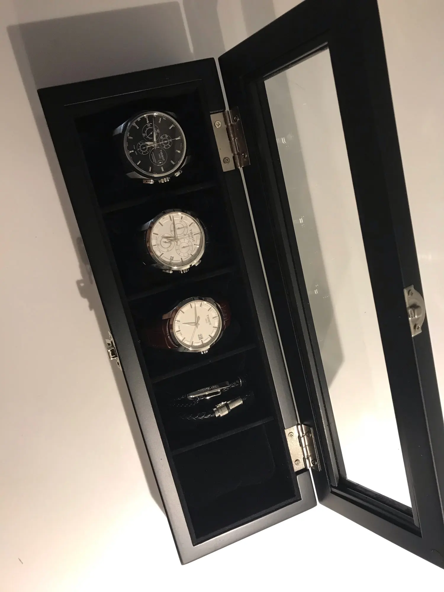 The thing I was afraid of, was that the glass will be broken, but thankfully it was ok, the packaging was a lot! Good job packing guys! And the box itself is great, looks premium, size is perfect for mostly 42mm watches. Thanks! No problem with the lock or hinges.