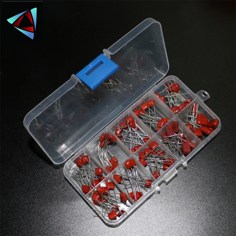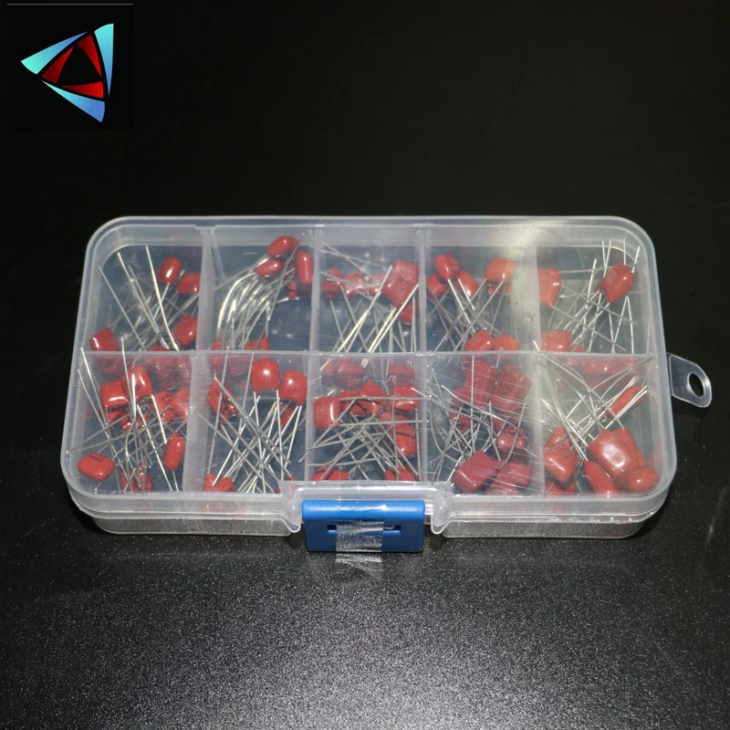100 шт.лот 10 нФ 470 НФ металлизированные Полиэфирные пленочные конденсаторы в ассортименте, набор высокоточных и устойчивых образцов конденсаторов CBB