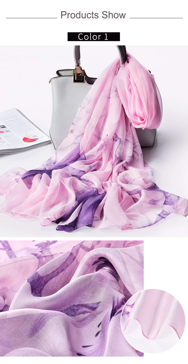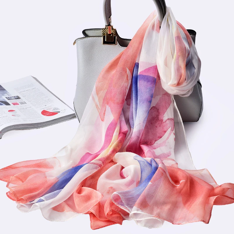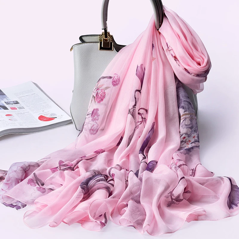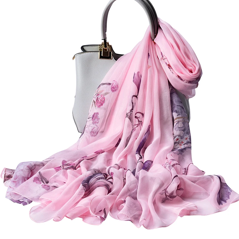 100% натуральный шелк, шифон шарф для Для женщин Ханчжоу натуральных шелковых платков Обёрточная бумага Элитный бренд принт чистого шелка длинный Шелковый шарф платок Femme