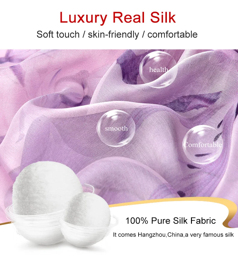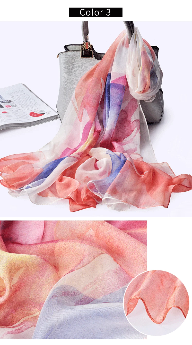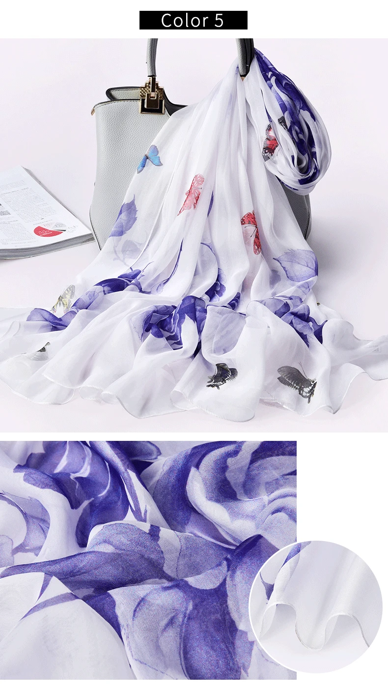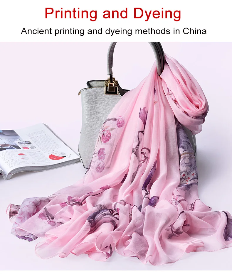 100% натуральный шелк, шифон шарф для Для женщин Ханчжоу натуральных шелковых платков Обёрточная бумага Элитный бренд принт чистого шелка длинный Шелковый шарф платок Femme