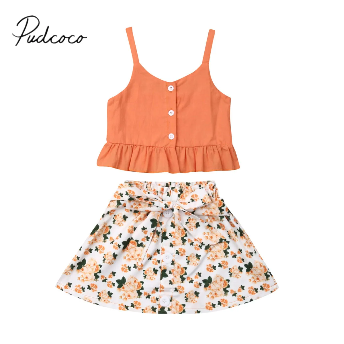 2019, Детская летняя одежда, для маленьких детей, для маленьких девочек, однотонный жилет и юбка, наряды, праздничный комплект в стиле бохо из 2 предметов