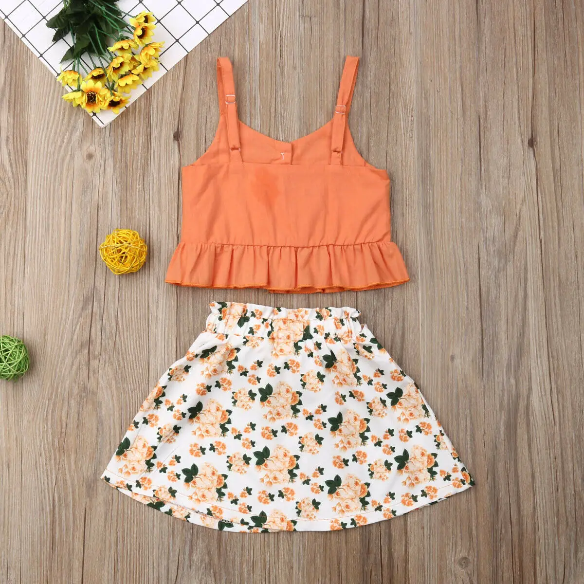 Комплект одежды для девочек, летний оранжевый топ на бретельках + ю...