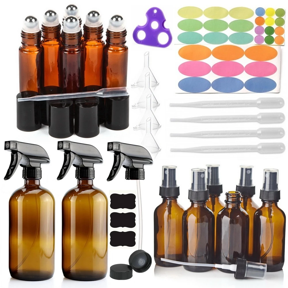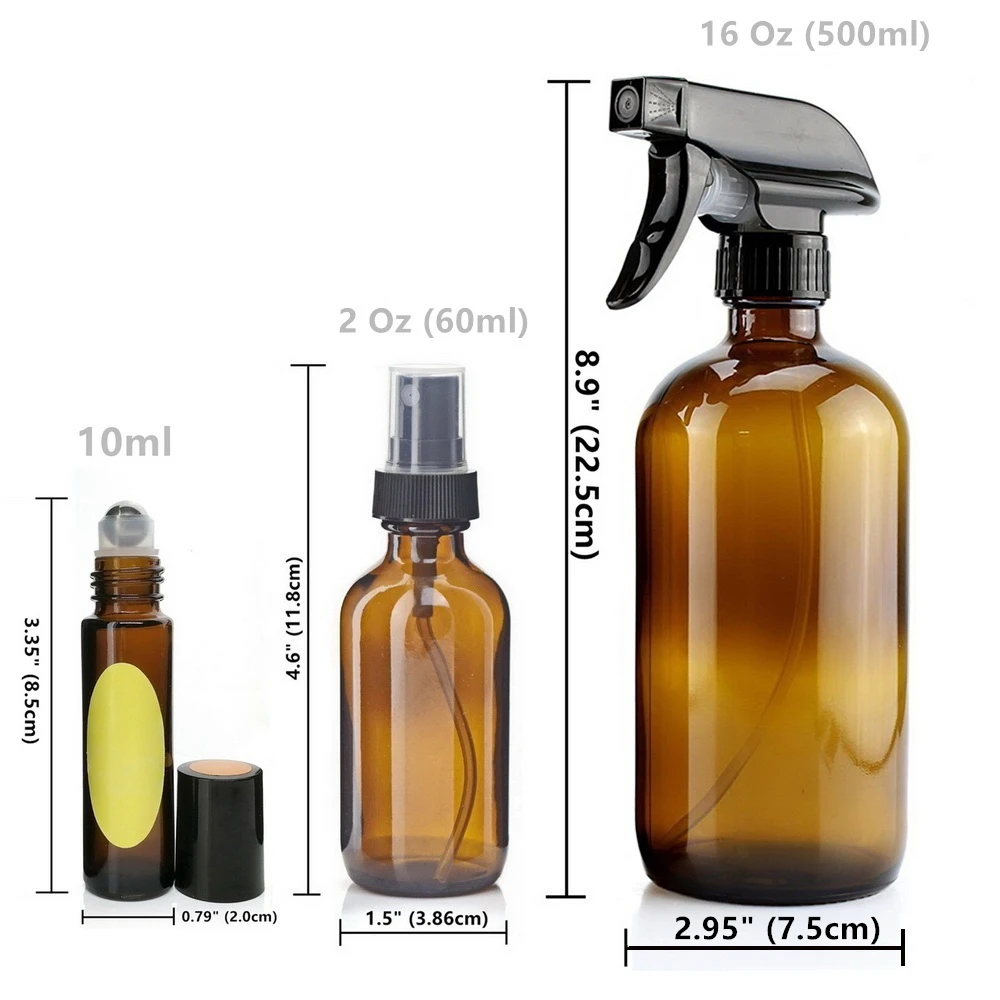 14 пакет пустой коричневый Стекло спрей бутылки w 6-10 мл рулонов на бутылки 6-60 мл и 2-500 мл пластиковая бутылка распылитель для Эфирное масло очистки Янтарный