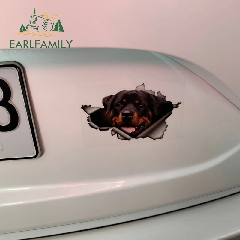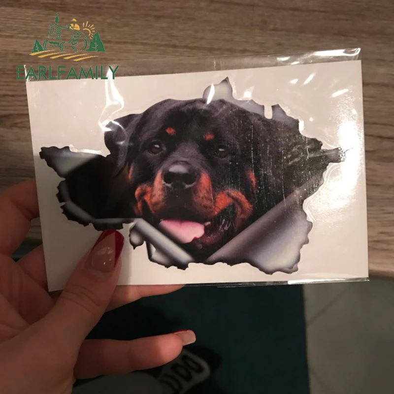 EARLFAMILY 13 см x 8,4 см Забавный Ротвейлер автомобильный стикер рваная металлическая наклейка Светоотражающая наклейка с собакой 3D вращающийся Автомобильный Стайлинг
