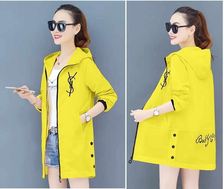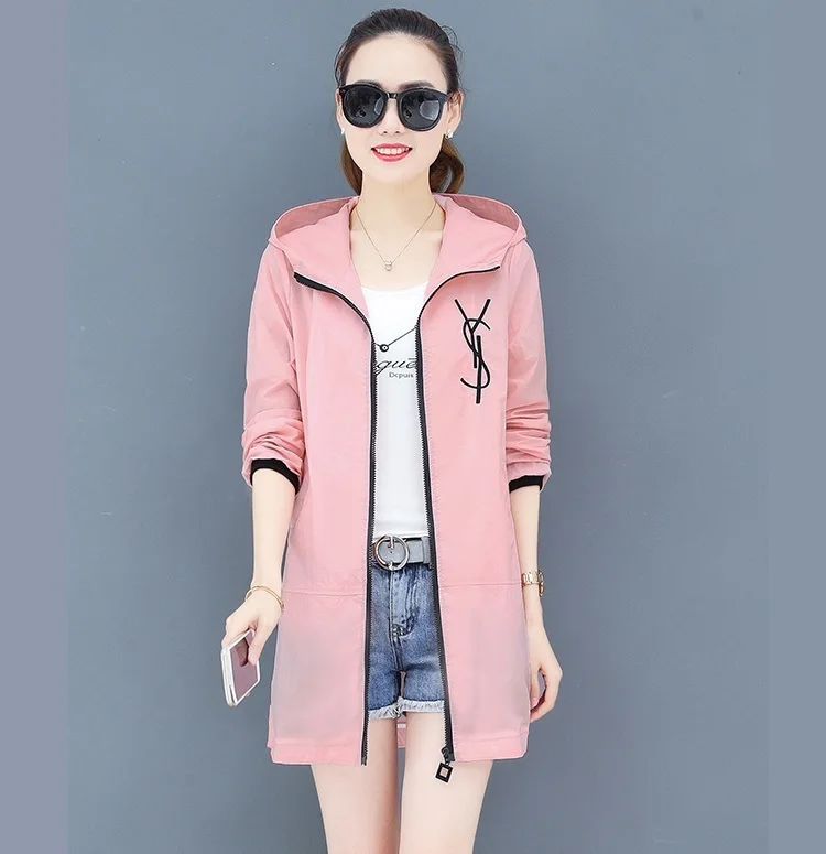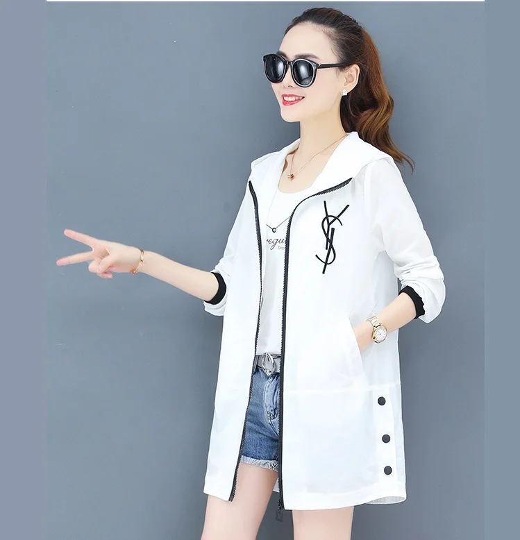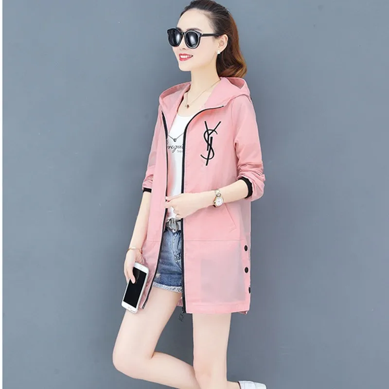 Куртка UHYTGF женская с капюшоном, Модный Повседневный дышащий пиджак с вышивкой, тонкая верхняя одежда для защиты от солнца, большие размеры 3XL, 12, на лето