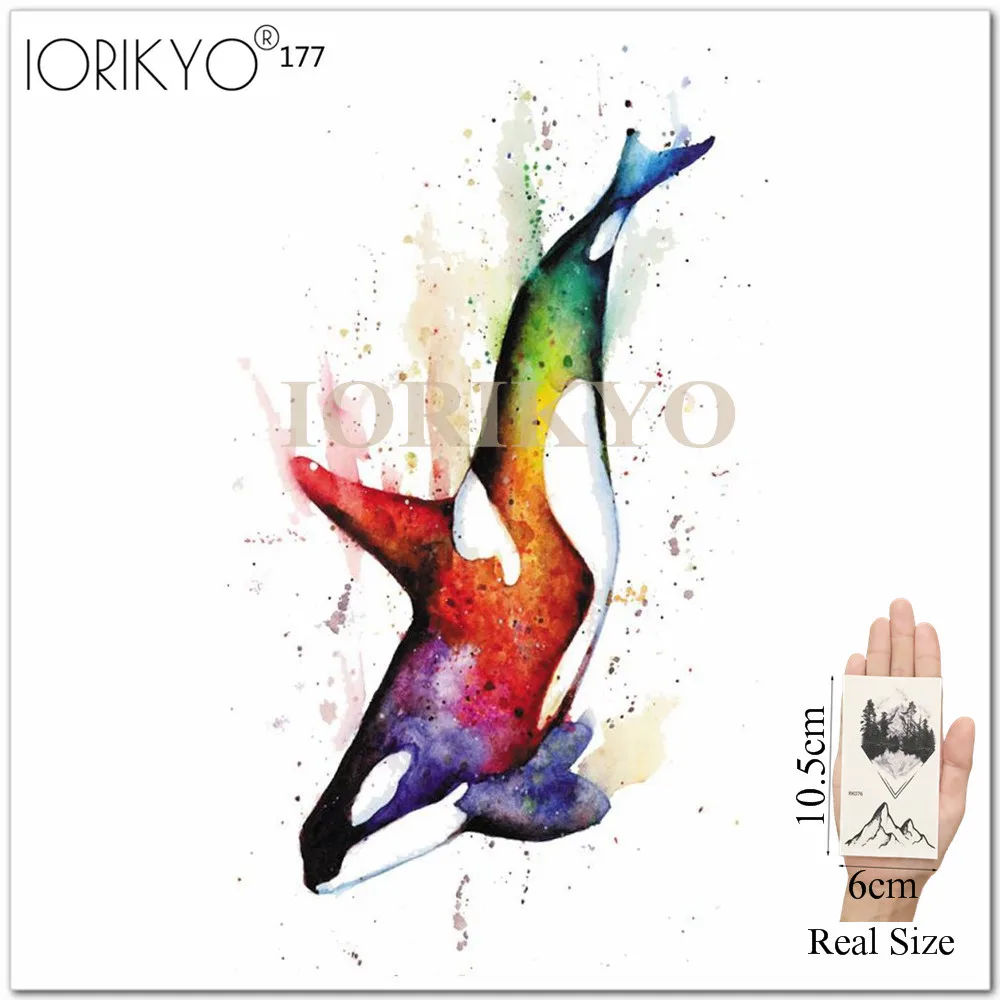Милые временные тату-наклейки IORIKYO с дельфином, 3D, Хаски, мужск...