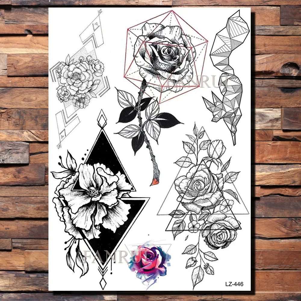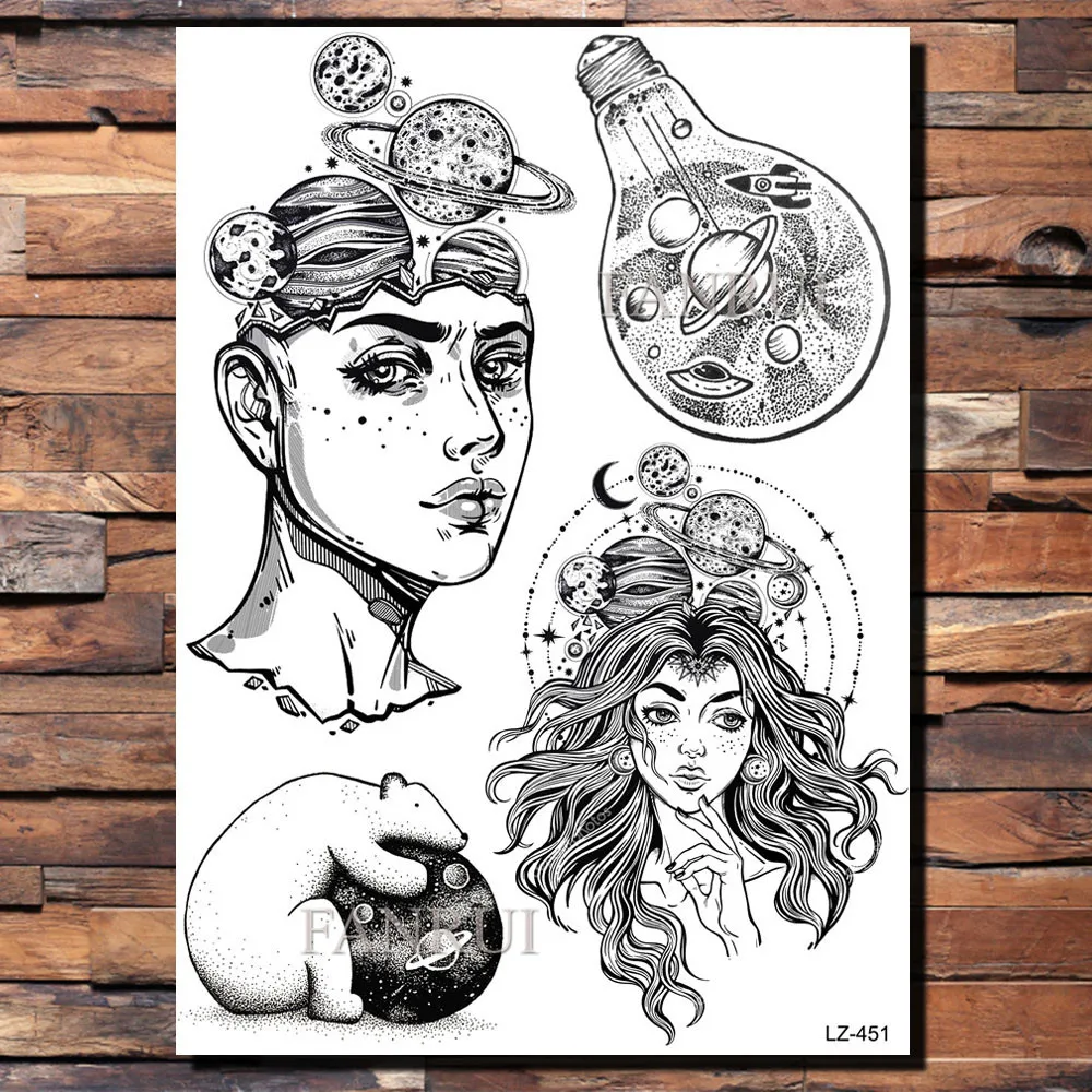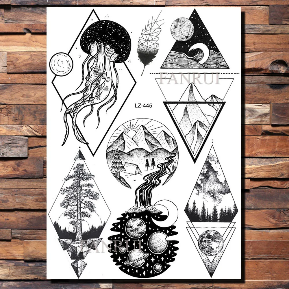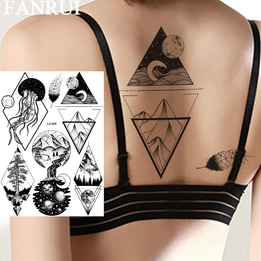 FANRUI Медуза Геометрическая Гора галактика звезда Временные татуировки для женщин наклейка искусственная Татуировка треугольные татуировки боди-арт черный