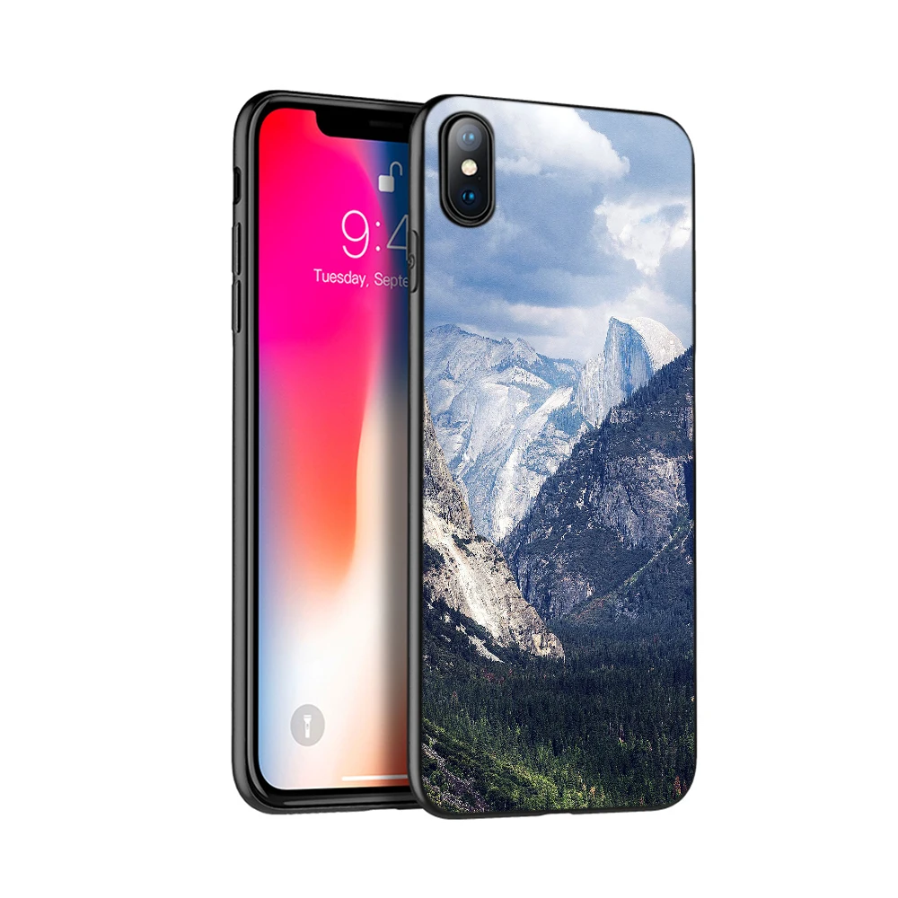 Черный чехол из ТПУ для iphone 5 5s SE 2020 6 6s 7 8 plus x 10, чехол для iphone XR XS 11 pro MAX, чехол с изображением гор, леса, облаков
