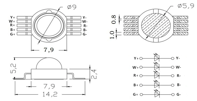 Светодиодный чип RGB RGBWY RGBWYV высокой мощности, 3 Вт 4 Вт 15 Вт...