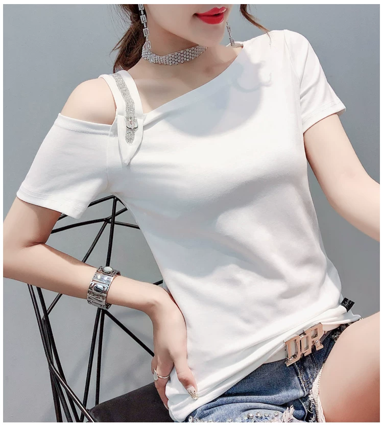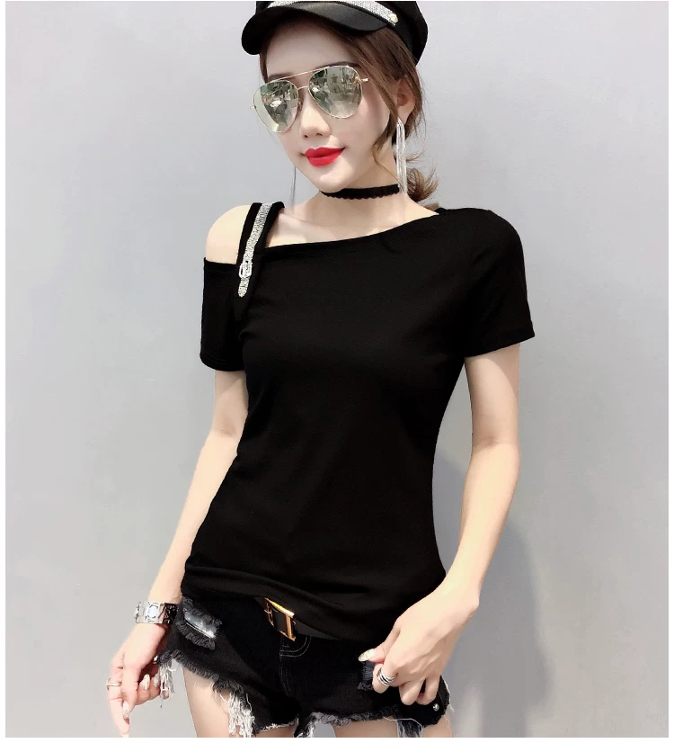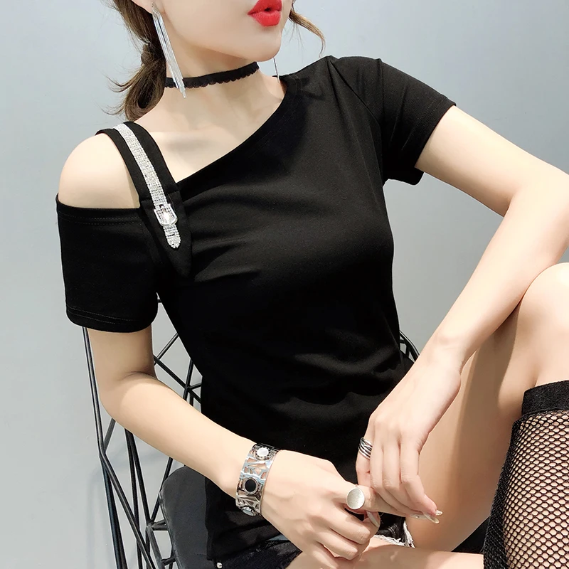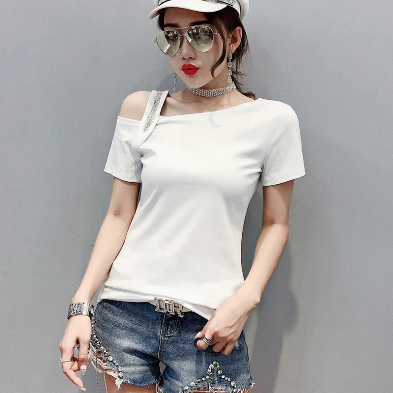 Футболка gkfnmt женская с вырезом лодочкой, хлопковый топ с короткими рукавами и вырезами, одежда в Корейском стиле, лето 2021