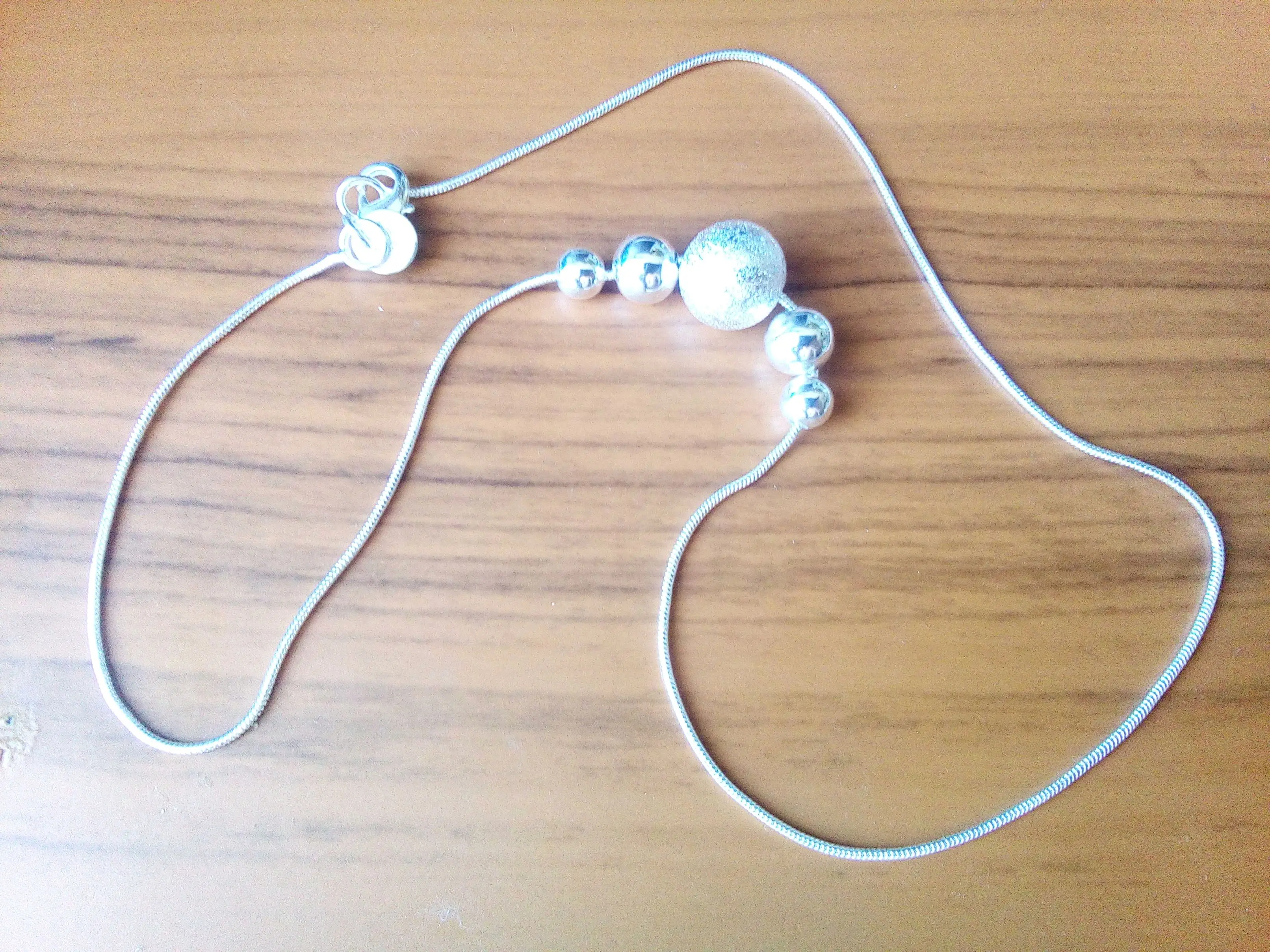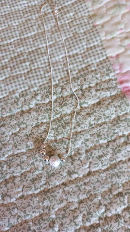 короткая цепочка,на тоненькую шею,на среднюю впритык.Бусины мелкие.