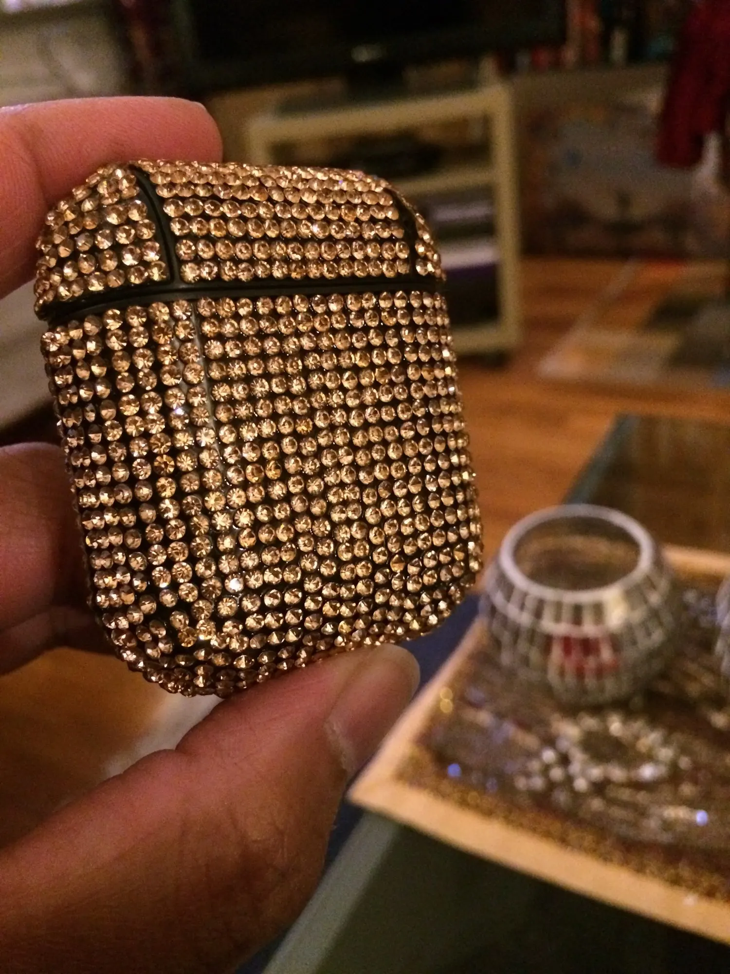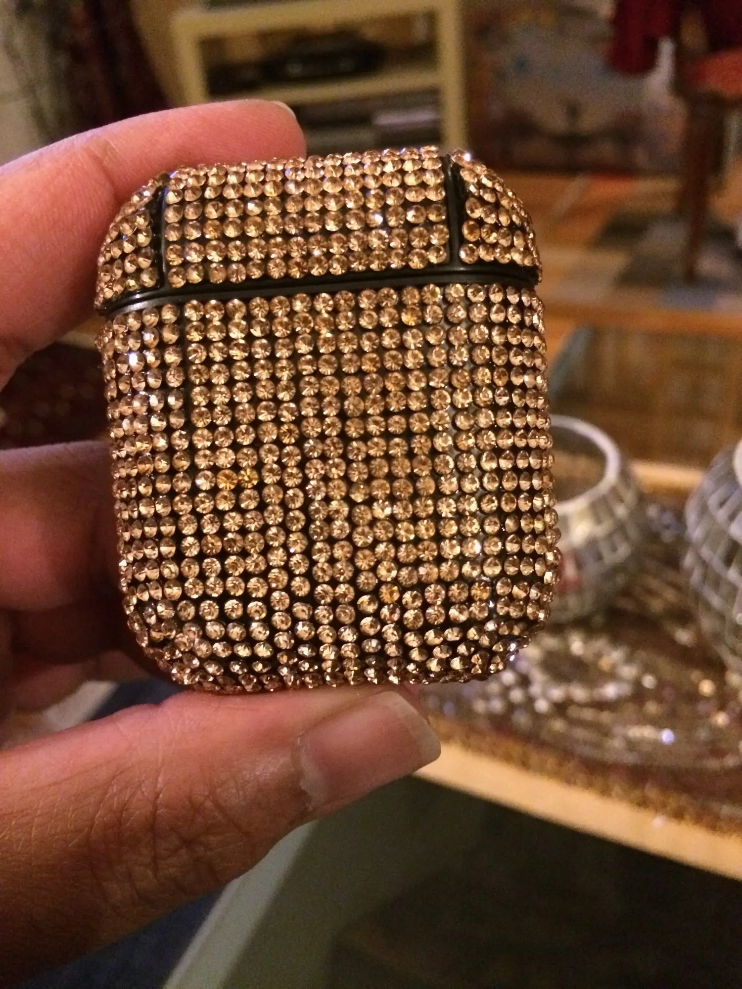 Очень красивый, сияет, все камни на месте. Крышка чуть слетает, но это не проблема
