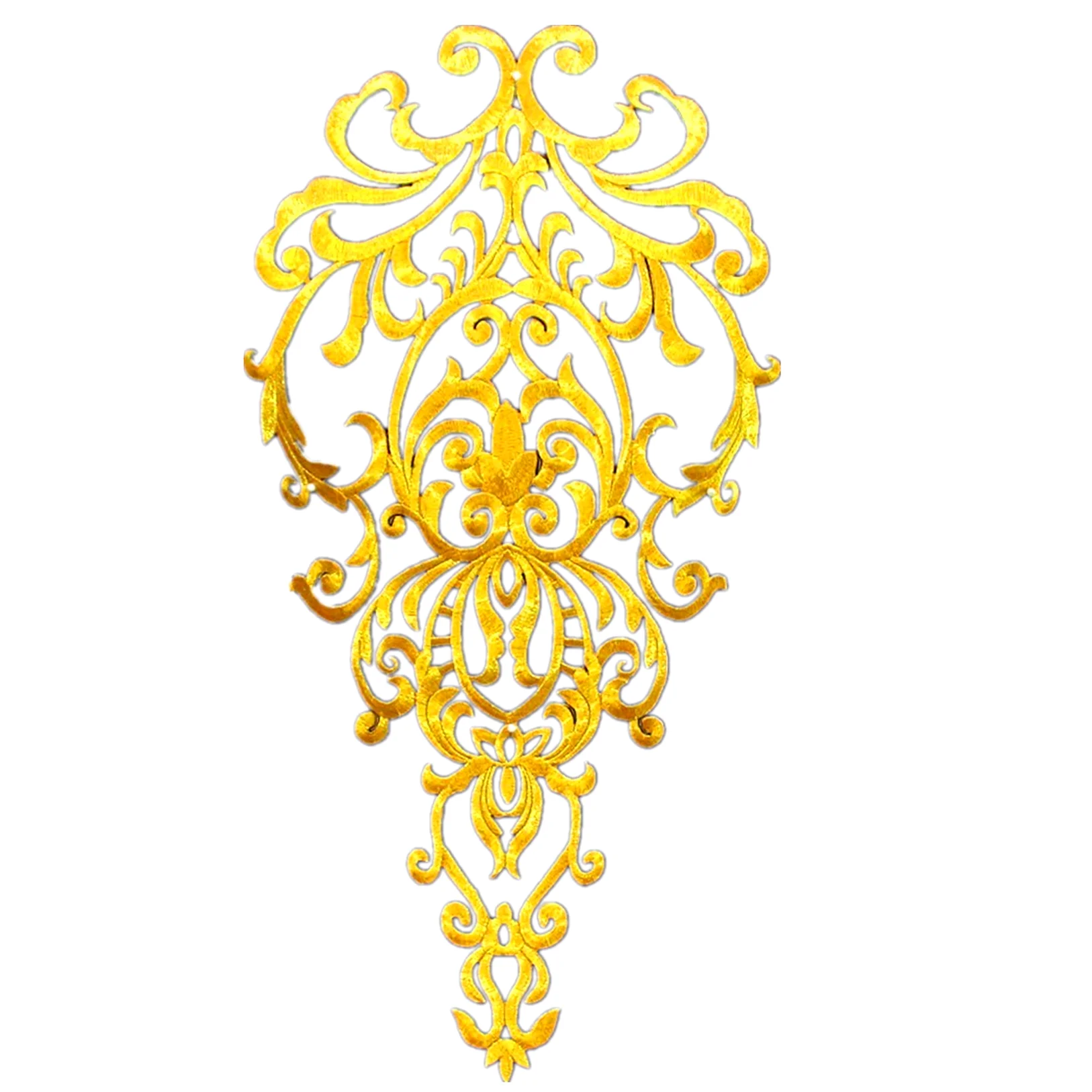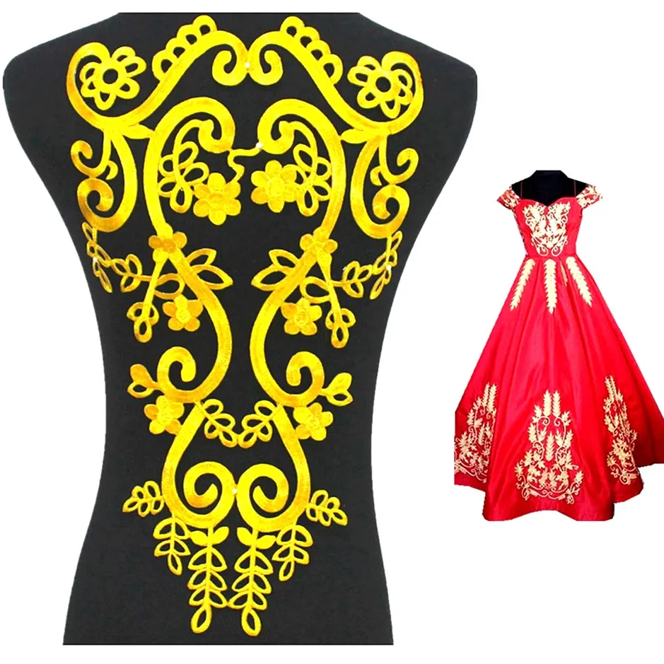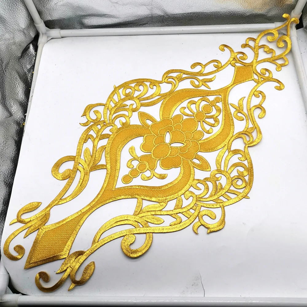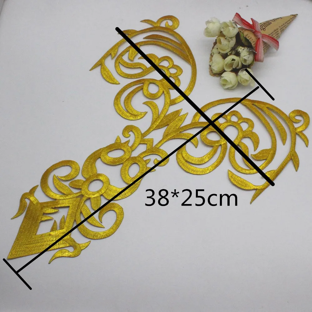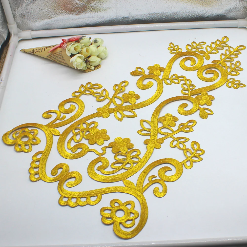 Термоаппликации для одежды, 50,5 см х 25 см, с золотыми вышитыми цветами