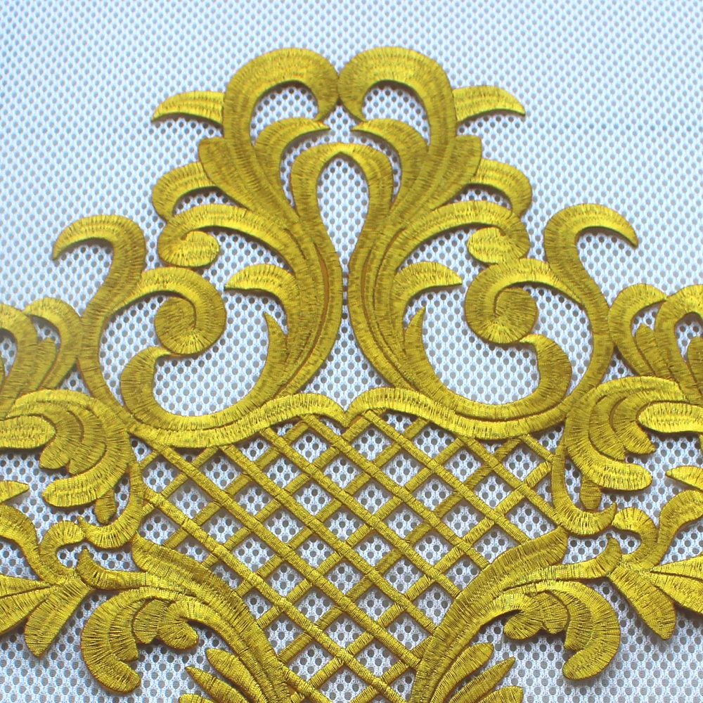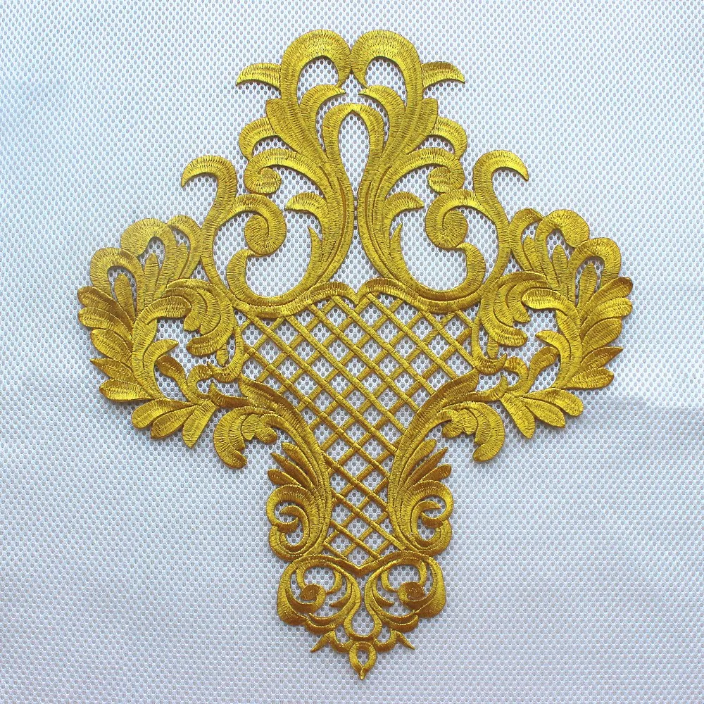 1 ярд золотые вышитые кружева для косплея платья Аппликации утюгом ...