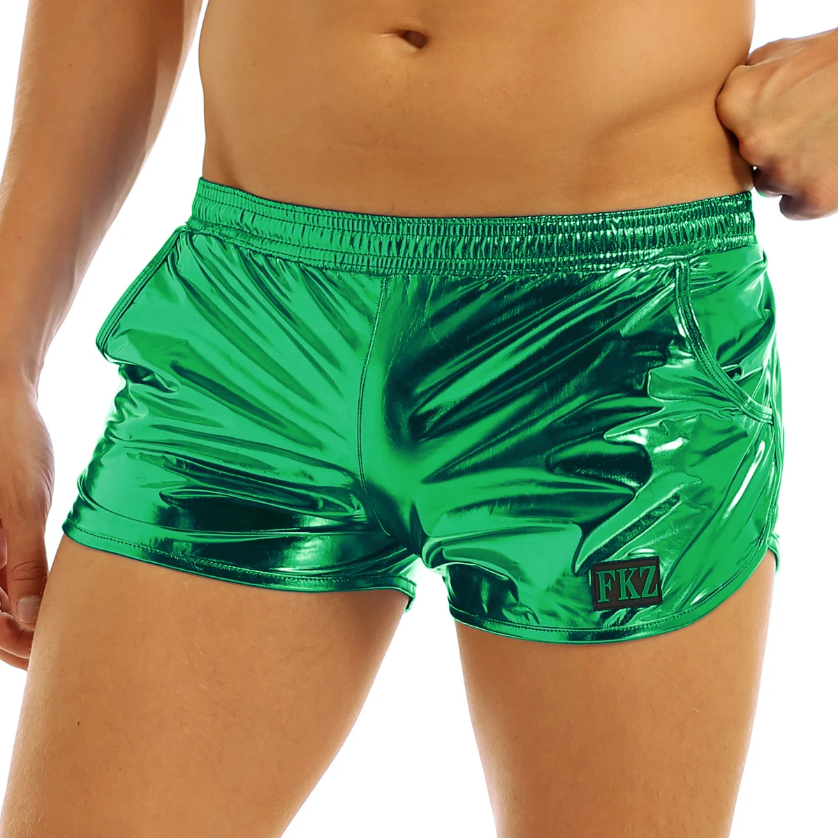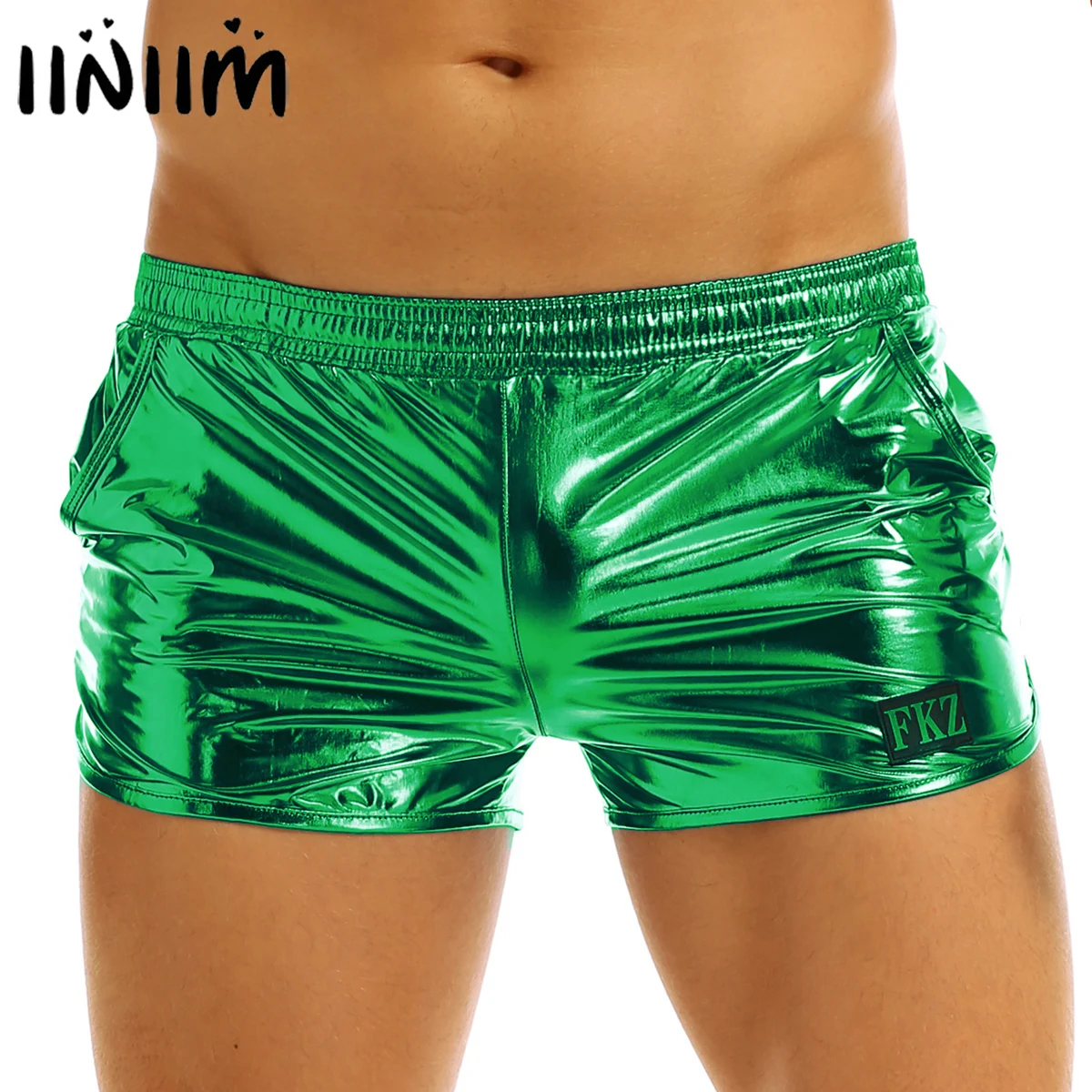 Iiniim мужские блестящие металлические шорты для ночного клуба, вечеринки, эластичный пояс, боксеры, выступление, лето, Клубная одежда, костюм, плавки