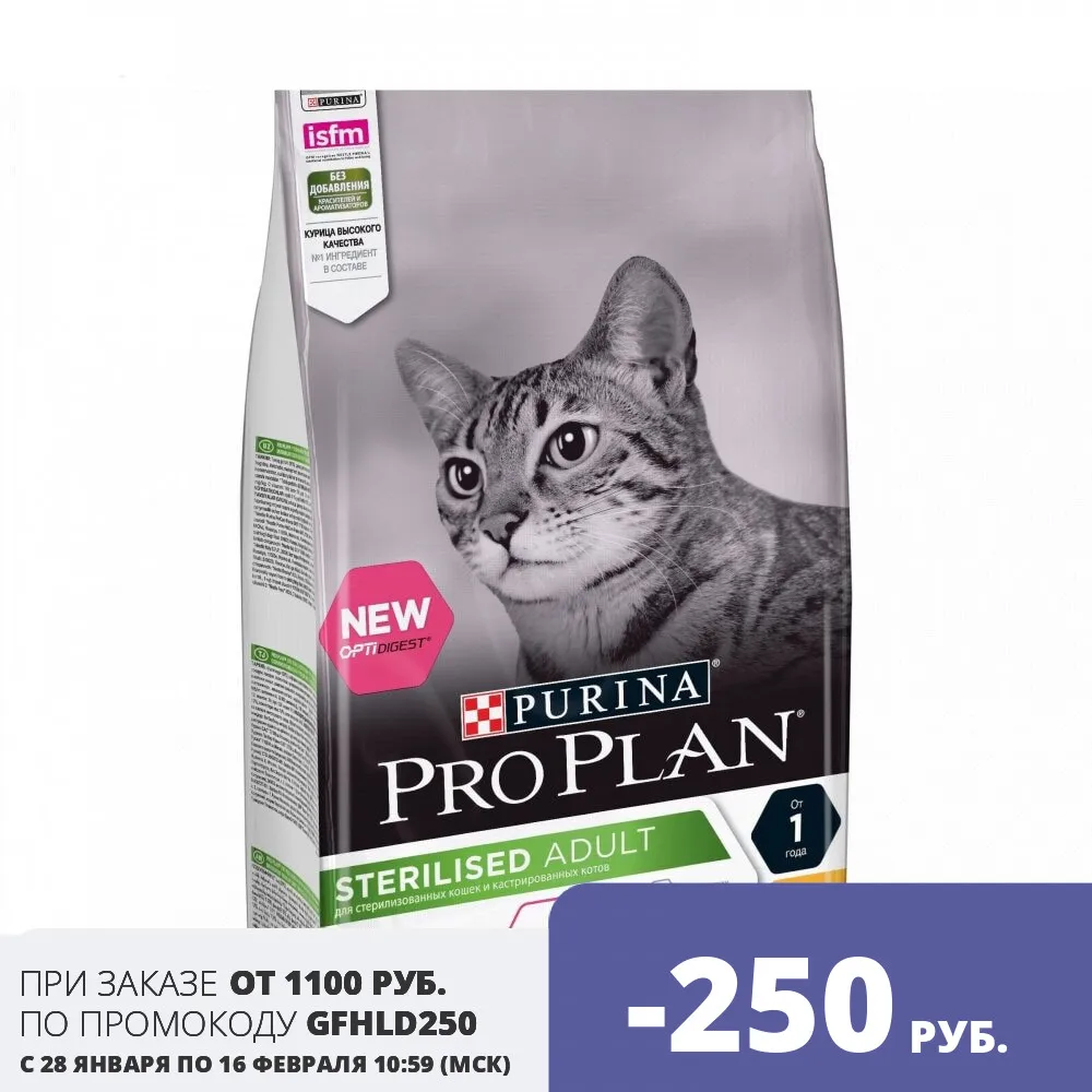Сухой корм Purina Pro Plan для стерилизованных кошек и кастрированных котов с чувствительным пищеварением, с курицей, Пакет, 1.5 кг