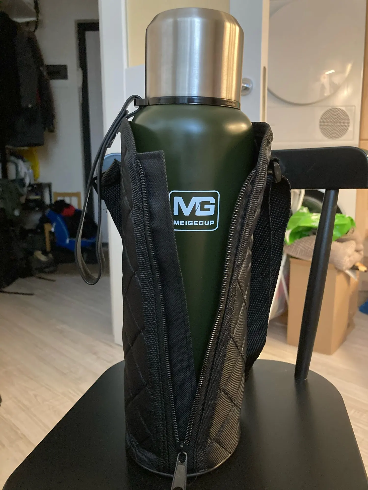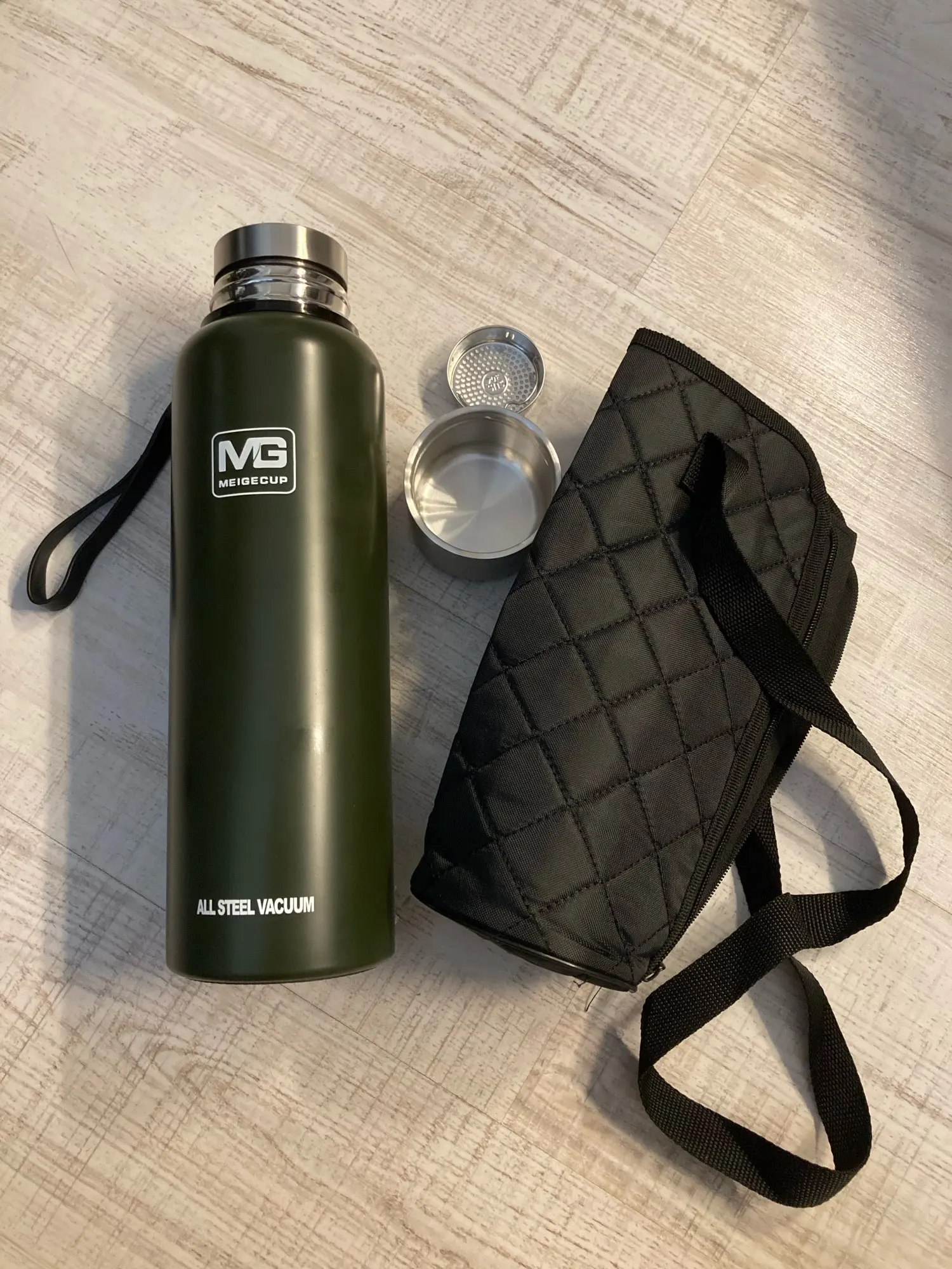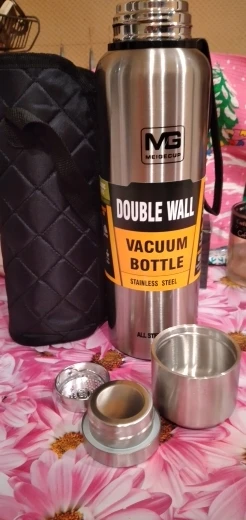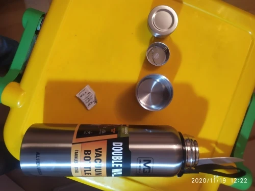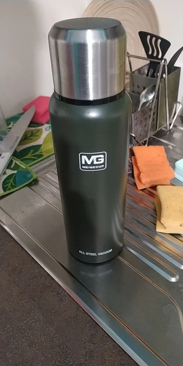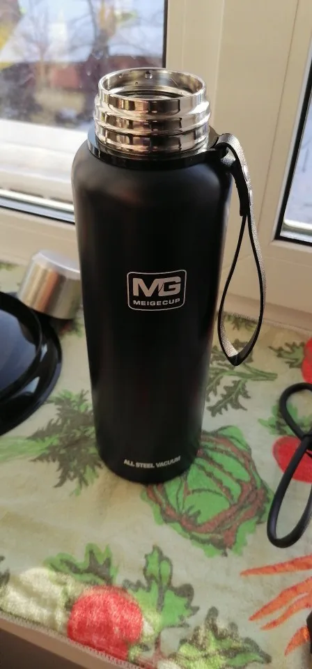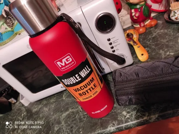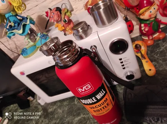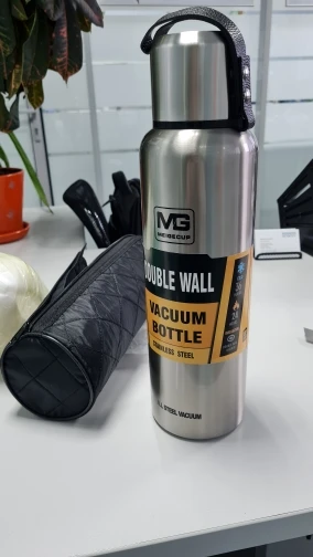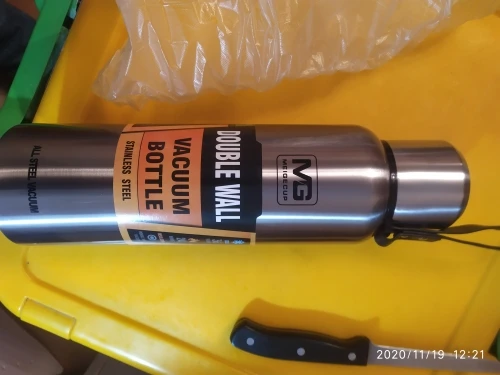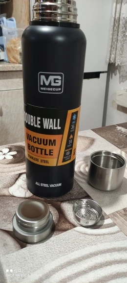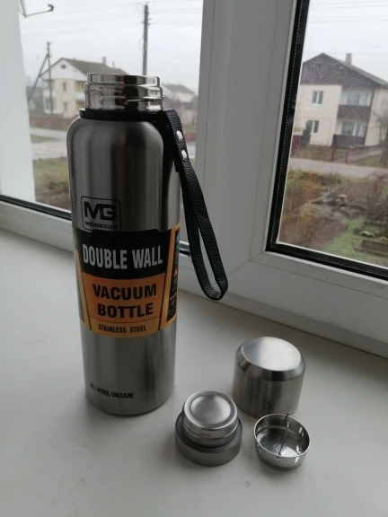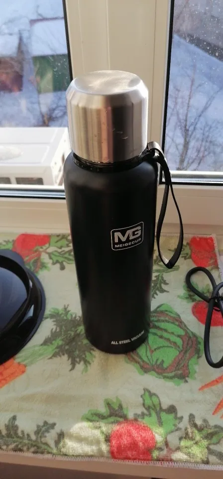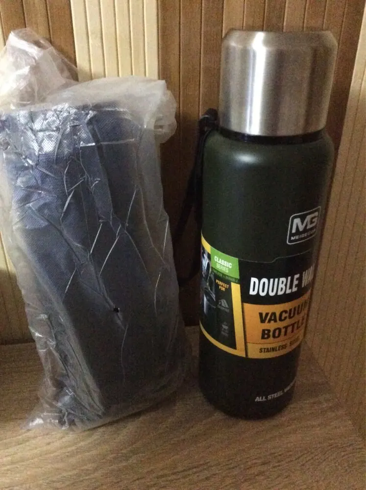 Хороший термос, температуру держит долго. Сумка очень удобная, длина ручки регулируется, повешал на плечо и гуляй по лесу. Ситечко тоже удобно, можно заваривать прямо в термосе. Вместо MG написано JK, но это я думаю роли не играет. Бумага наклеенная после первой мойки стала слазить, я её оторвал. Упаковано хорошо,ничего не повредилось.