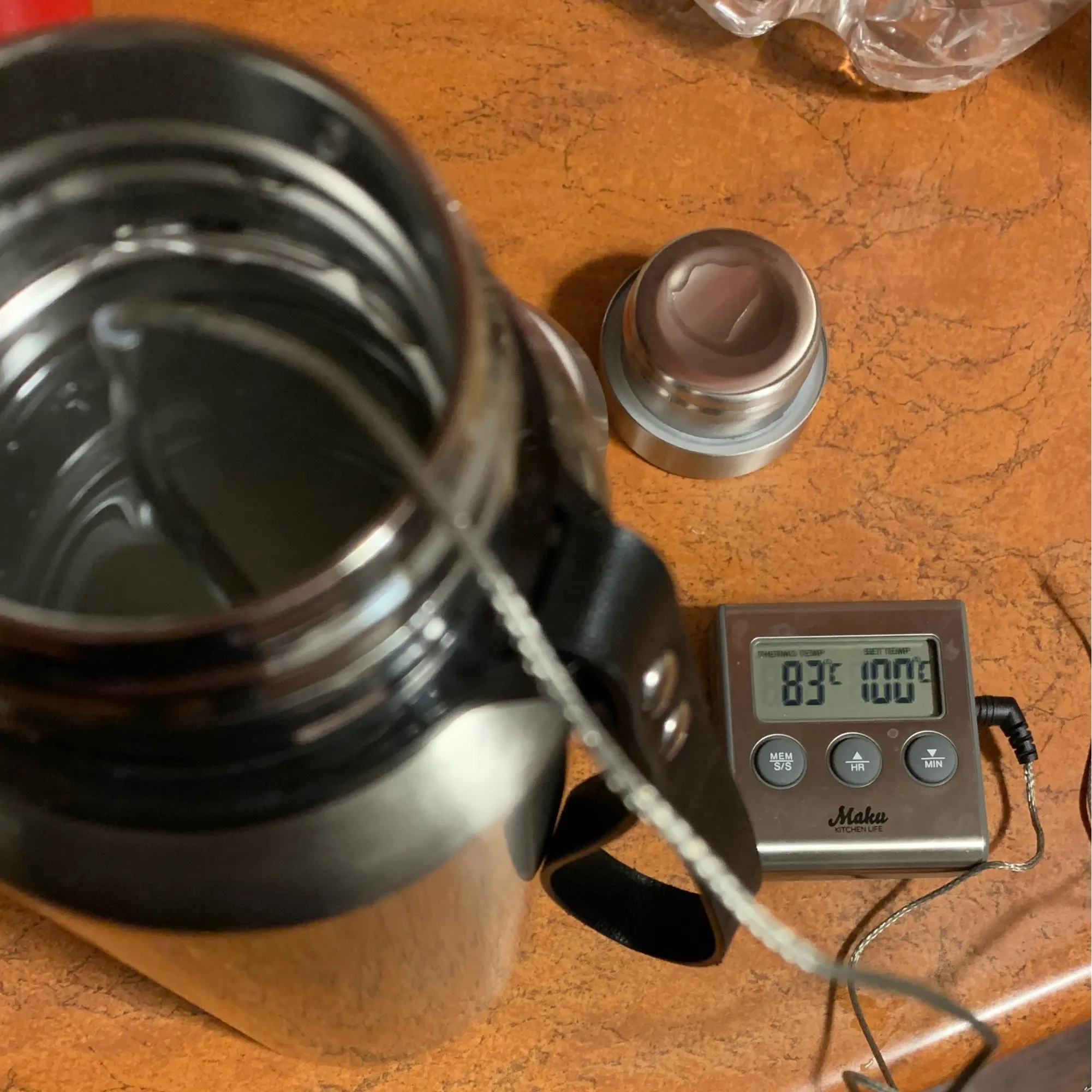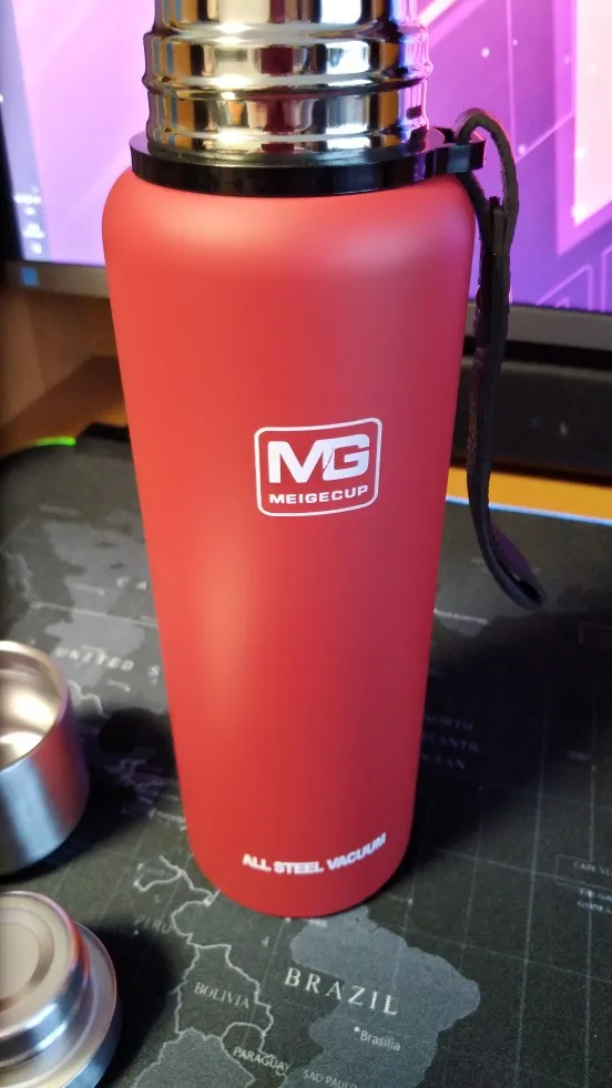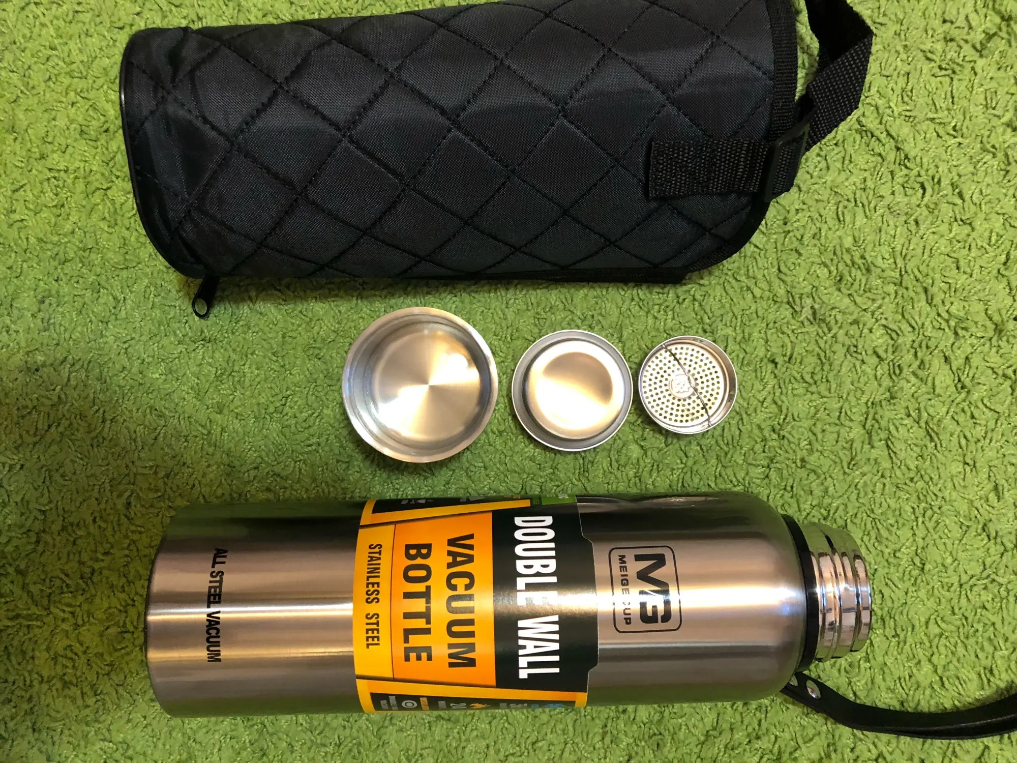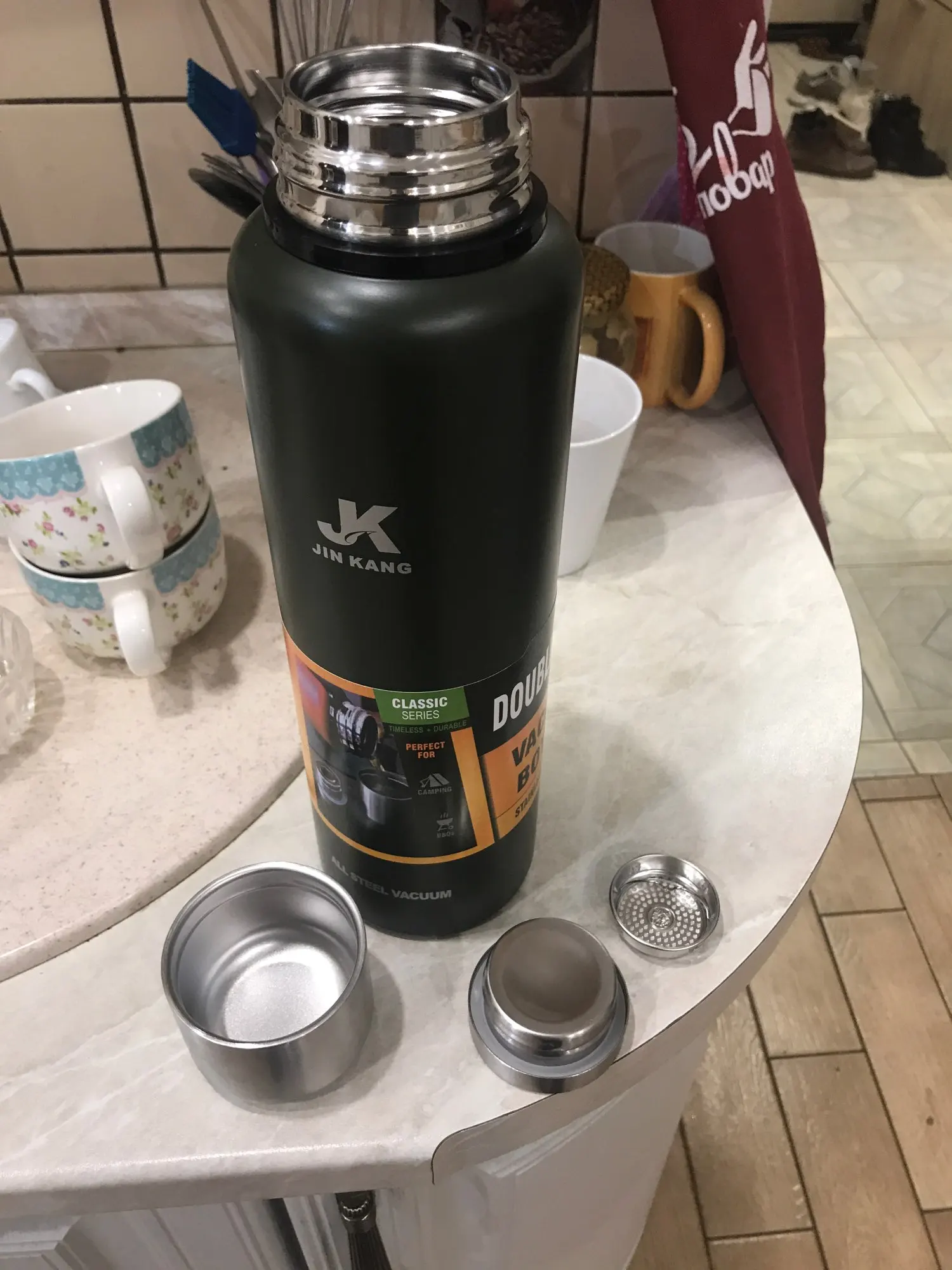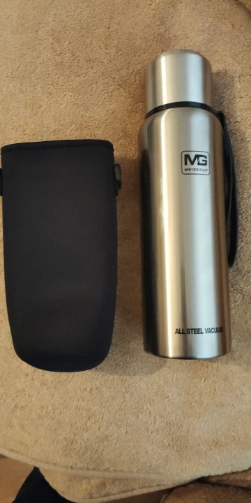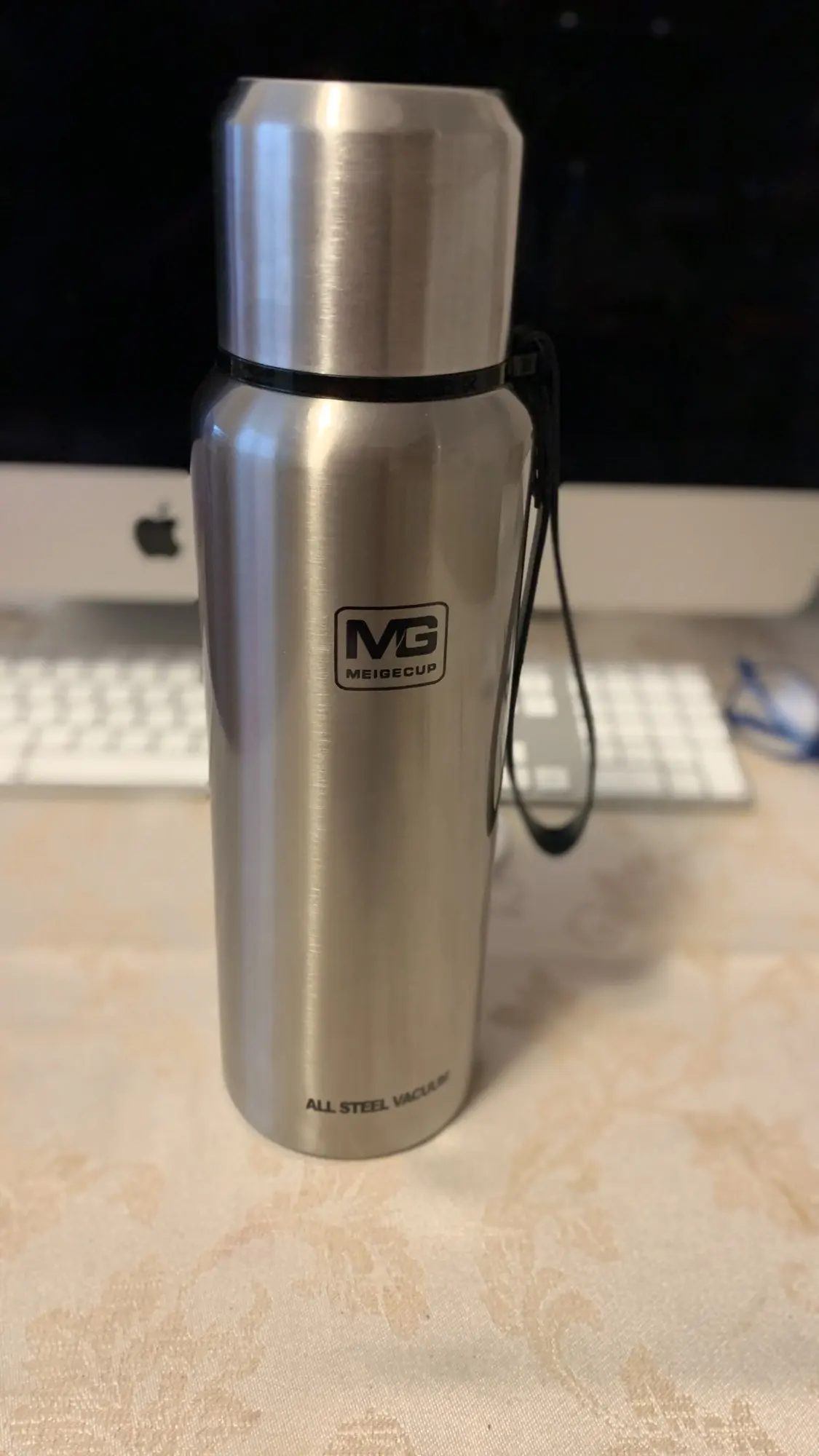 Хороший термос, температуру держит долго. Сумка очень удобная, длина ручки регулируется, повешал на плечо и гуляй по лесу. Ситечко тоже удобно, можно заваривать прямо в термосе. Вместо MG написано JK, но это я думаю роли не играет. Бумага наклеенная после первой мойки стала слазить, я её оторвал. Упаковано хорошо,ничего не повредилось.