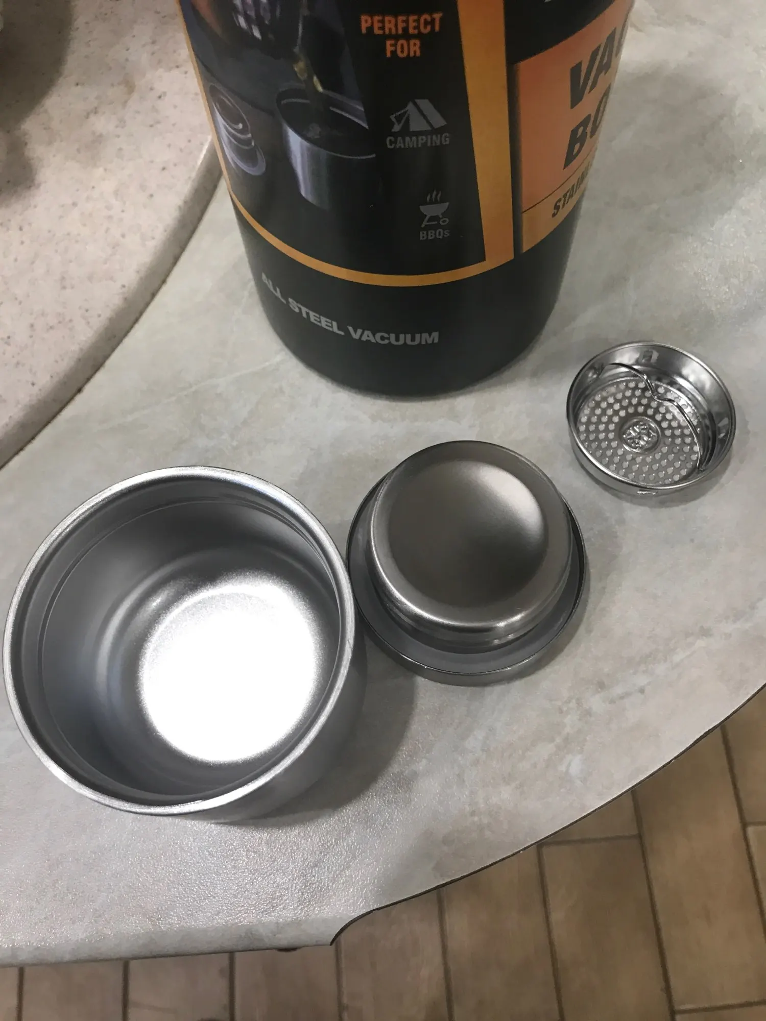 На вид очень хороший термос, но пока не испытали. Снизу резиновое дно. Внутри съёмное ситечко. Пришёл хорошо упакованным поэтому никаких повреждений на нём нет. Шёл в РБ чуть больше двух месяцев. Рекомендую.