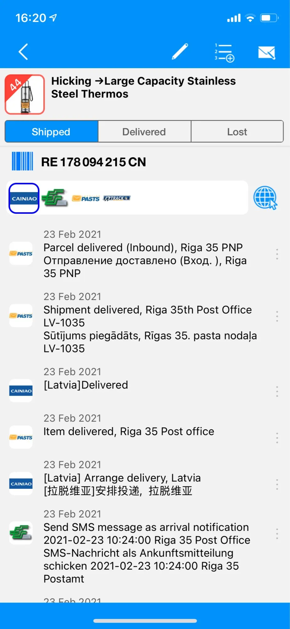 Страна: LV Color: Silver with bag Capacity: 1500ml Доставка: China Post Registered Air Mail 22.10.2020