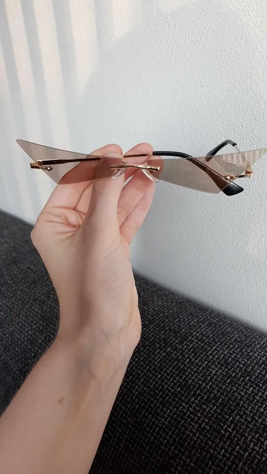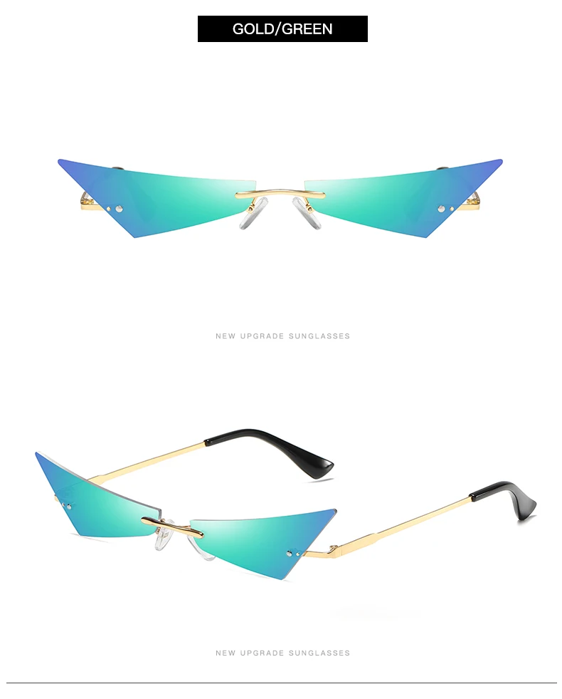 Солнцезащитные очки женские мужские без оправы, маленькие, солнцезащитные очки кошачий глаз, брендовые дизайнерские, узкие, кошачий глаз, зеркальные, женская уличная одежда