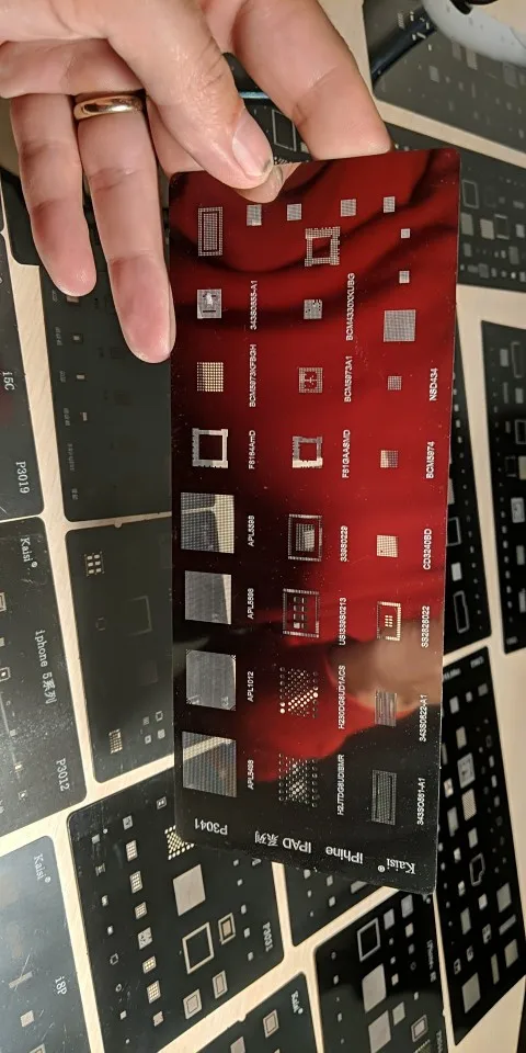 Набор трафаретов,прекрасного качества. Для ремонт всех айфонов Apple. Очень доволен набором и продавцом.Большое спасибо.Пять звезд. Всем рекомендую этого продавца. A set of stencils and excellent quality. To repair all Apple iPhones. Very happy with the set and the seller.Thank you very much.Five stars. I recommend this seller to everyone.