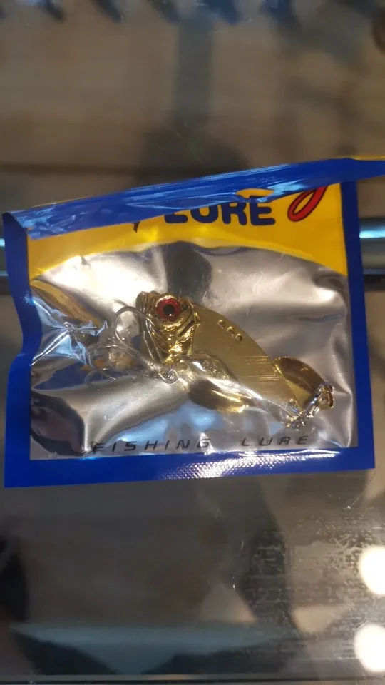Заказ пришел достаточно быстро. В передней части блесны нет обычного отверстия или колечка, видимо цепляться она должна в одно из отверстий на "спинке". Летом попробую.