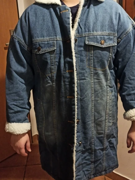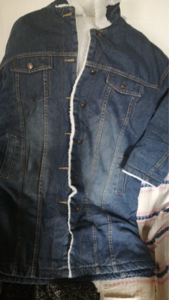 хорошая теплая куртка. взяла самый большой размер который был, чтобы был прям оверсайз. но все-равно хотелось бы еще больше. думаю, на девушке с промо фото самый большой размер, а сама она худая. джинса потертая, как на картинке. в целом хорошо.