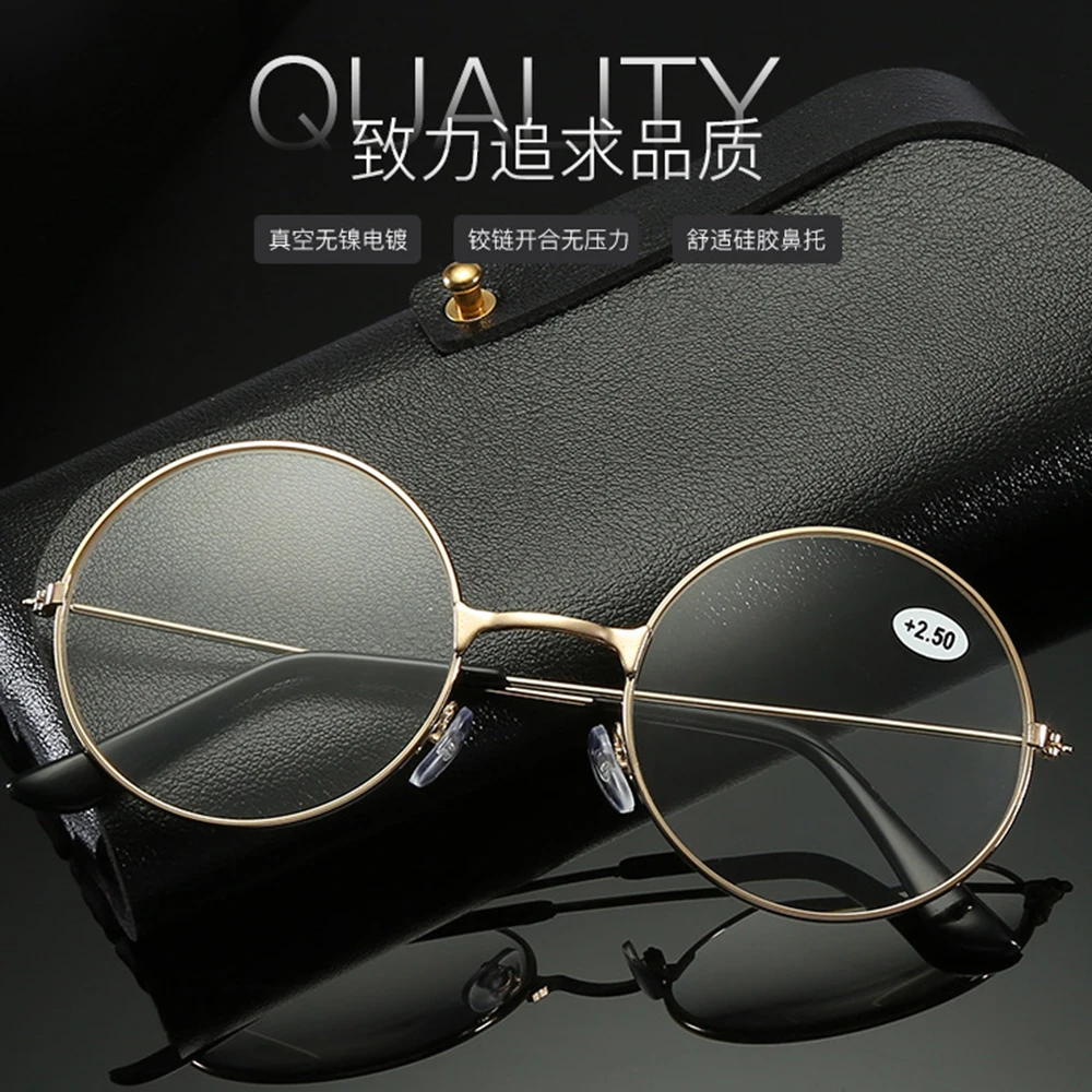 Мужские и женские очки для чтения, 2 пары, круглая винтажная Золотая оправа из сплава с защитой от усталости, 0,75 + 1,25 + 1,5 + 2,00 + 1,75 до + 4
